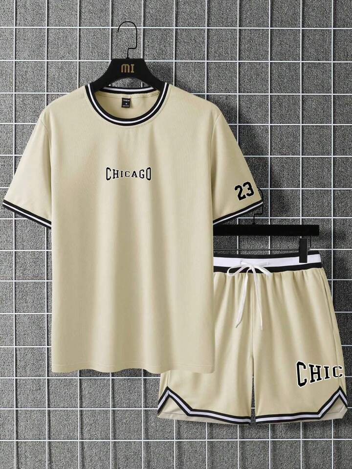 Homme À Lettres À Bordure Contrastante T-shirt & À Cordon Short
