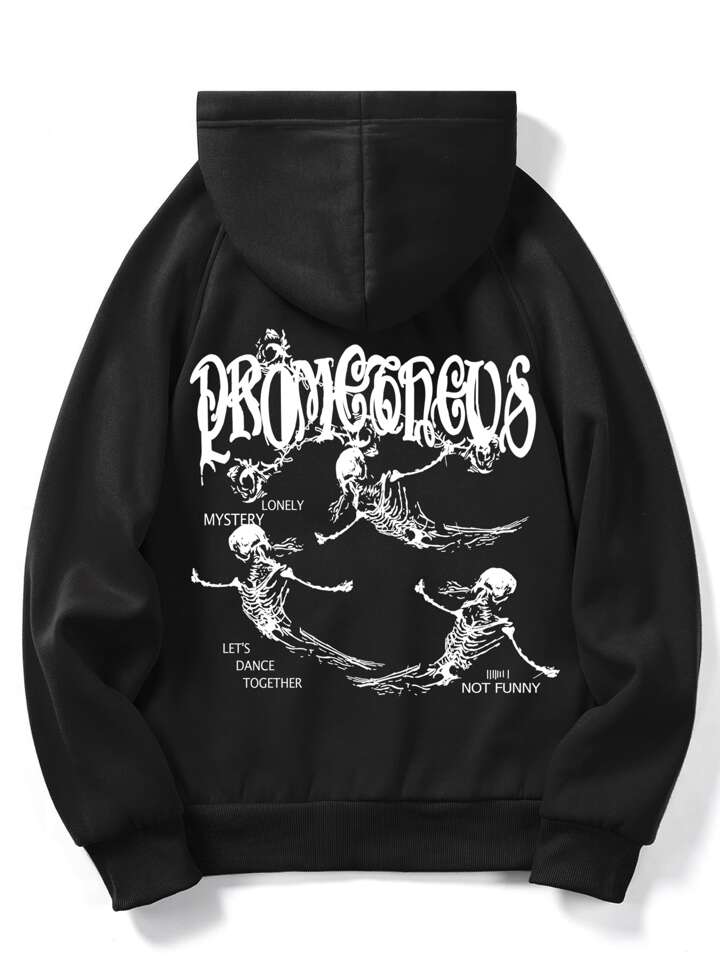 Homme Sweat-shirt à capuche à lettres à cordon à doublure thermique