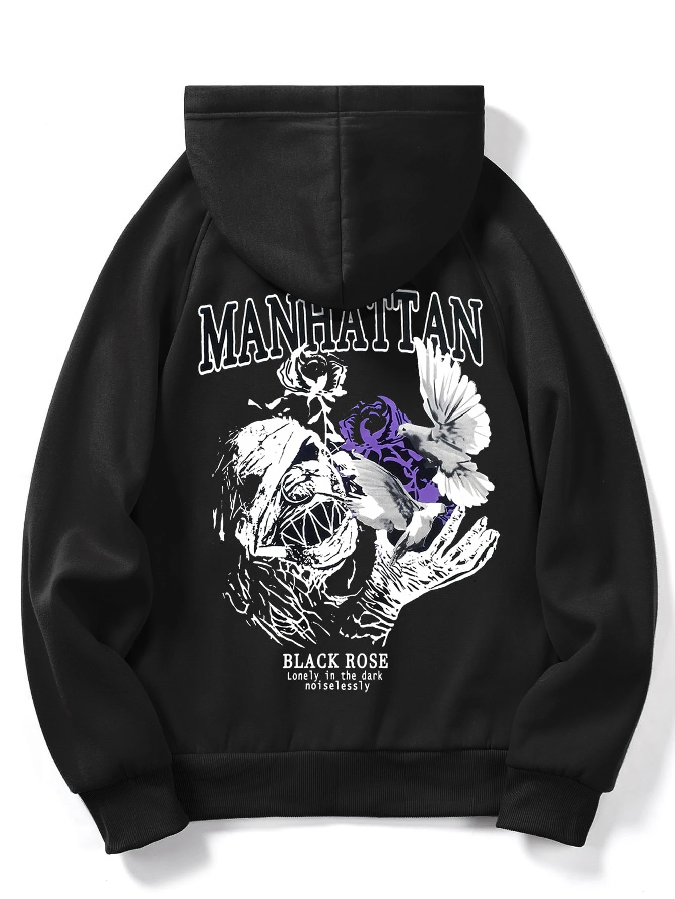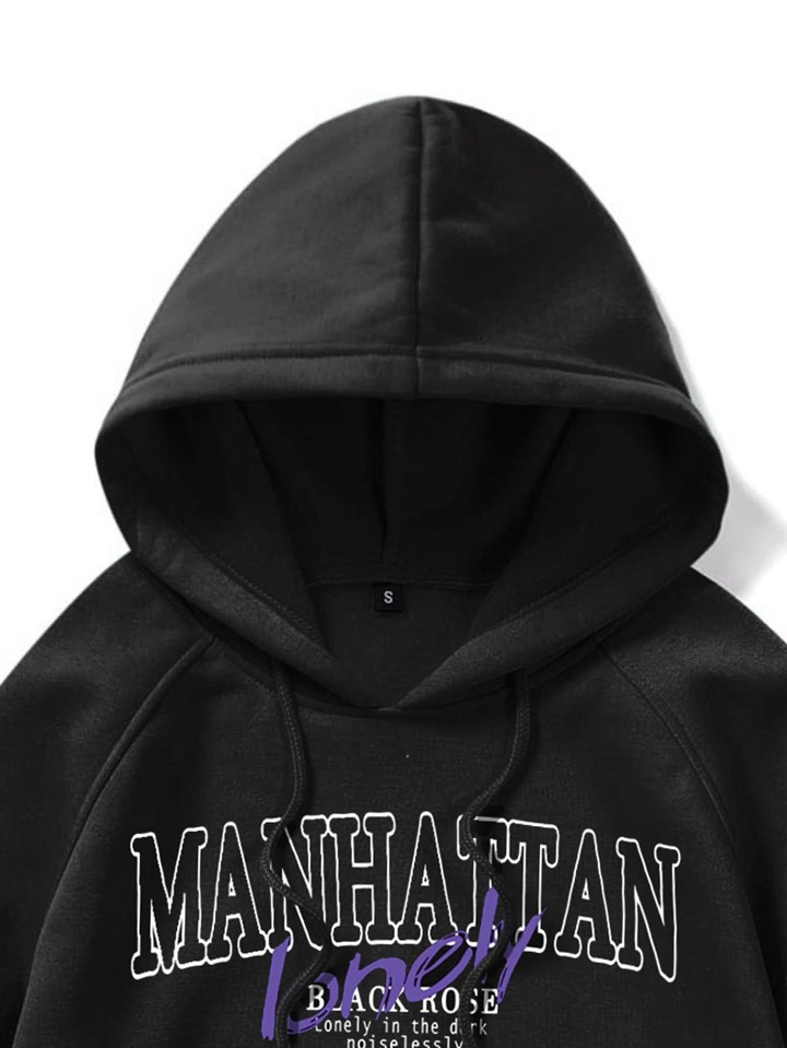 Homme Sweat-shirt à capuche thermique à lettres à manches raglan à cordon
