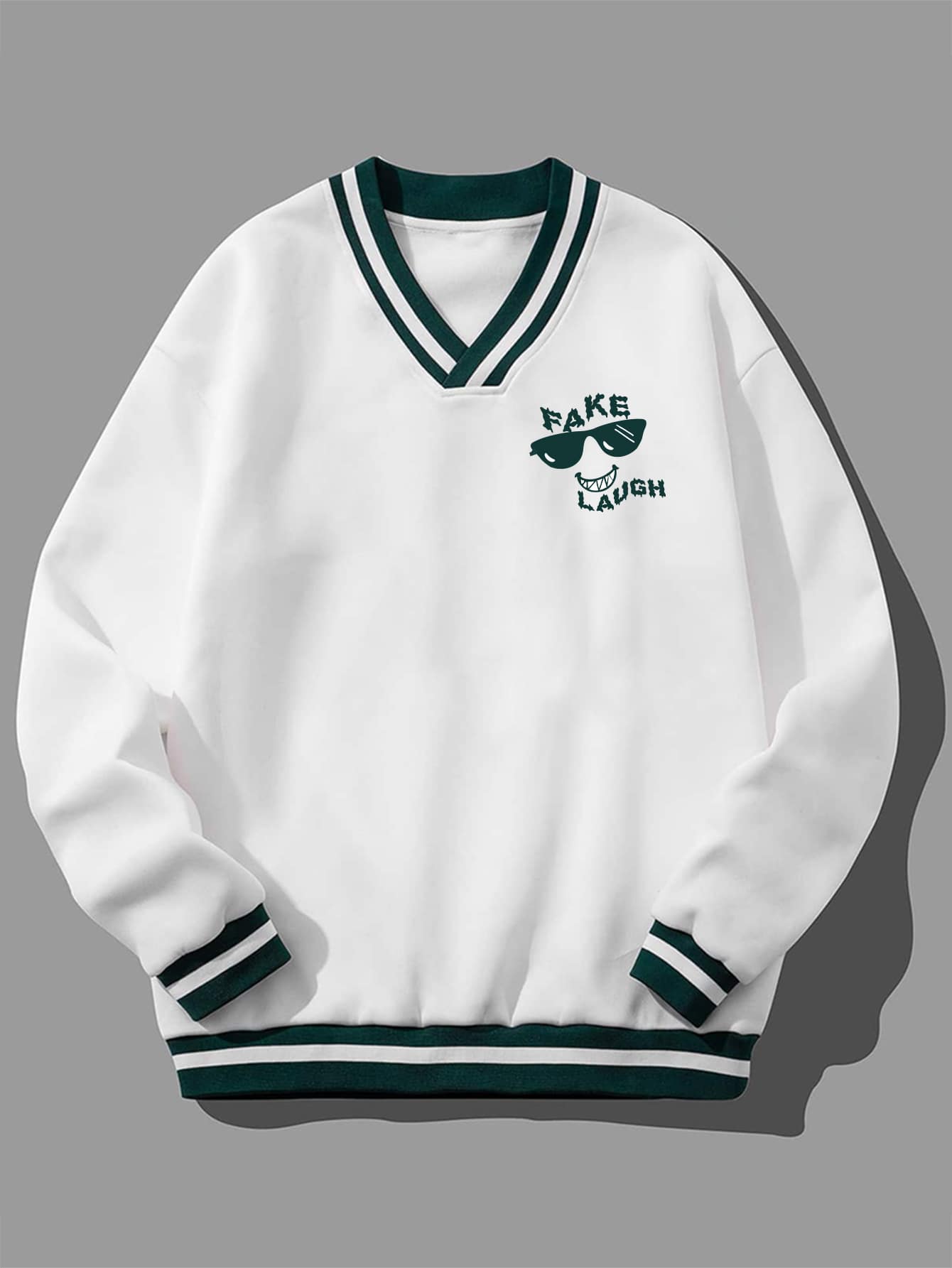 Homme Sweat-shirt thermique à lettres à ourlet à rayures