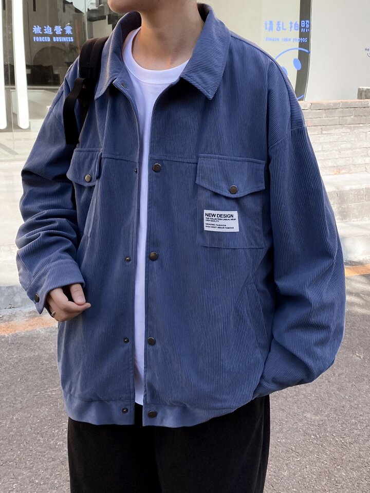 Homme Manteau en velours côtelé à applique lettre poche à rabat