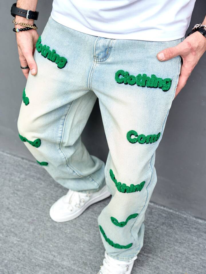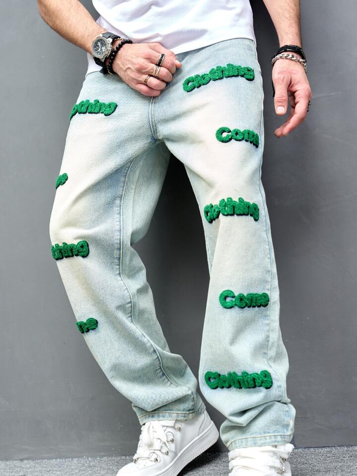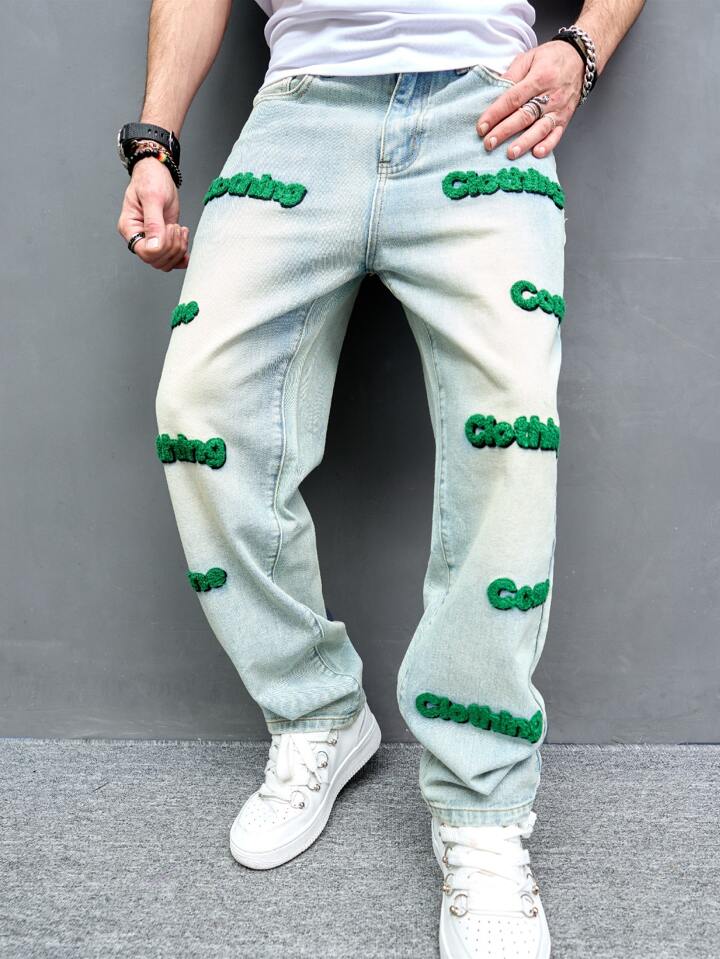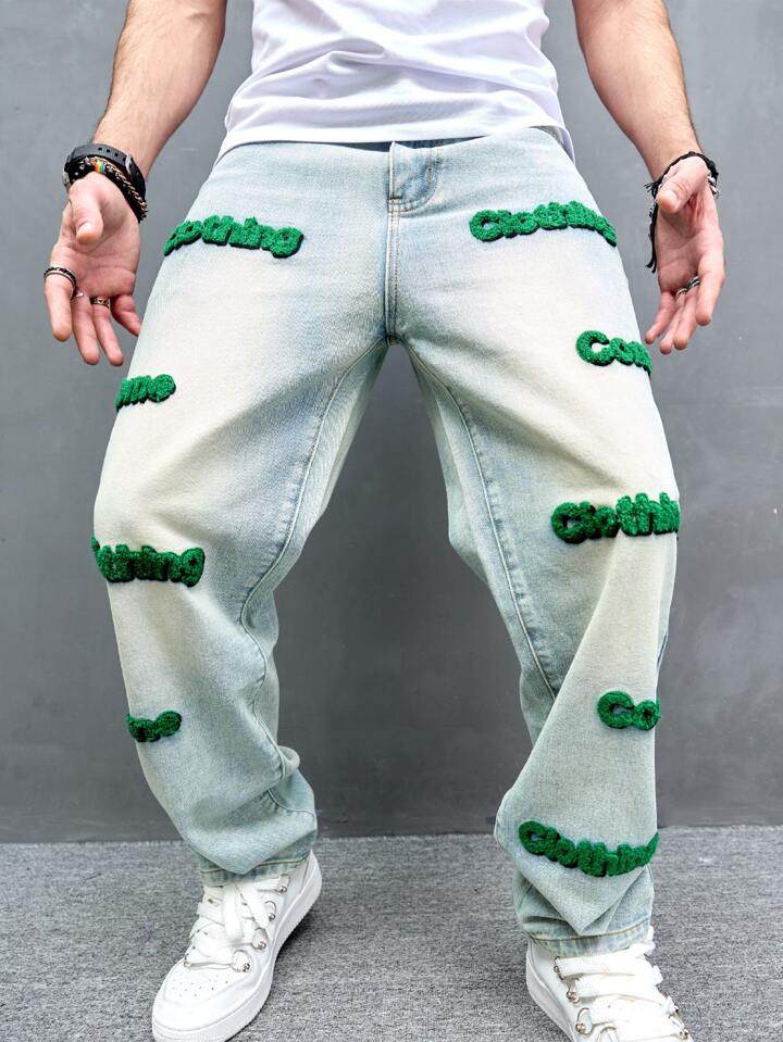 Jean Ample Pour Homme Avec Lettres Et Poches Inclinées