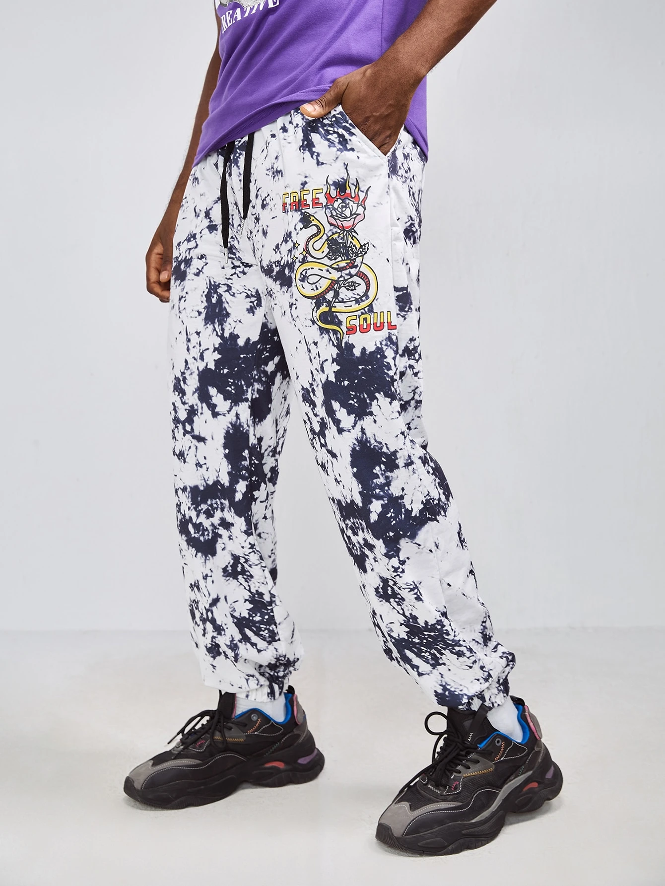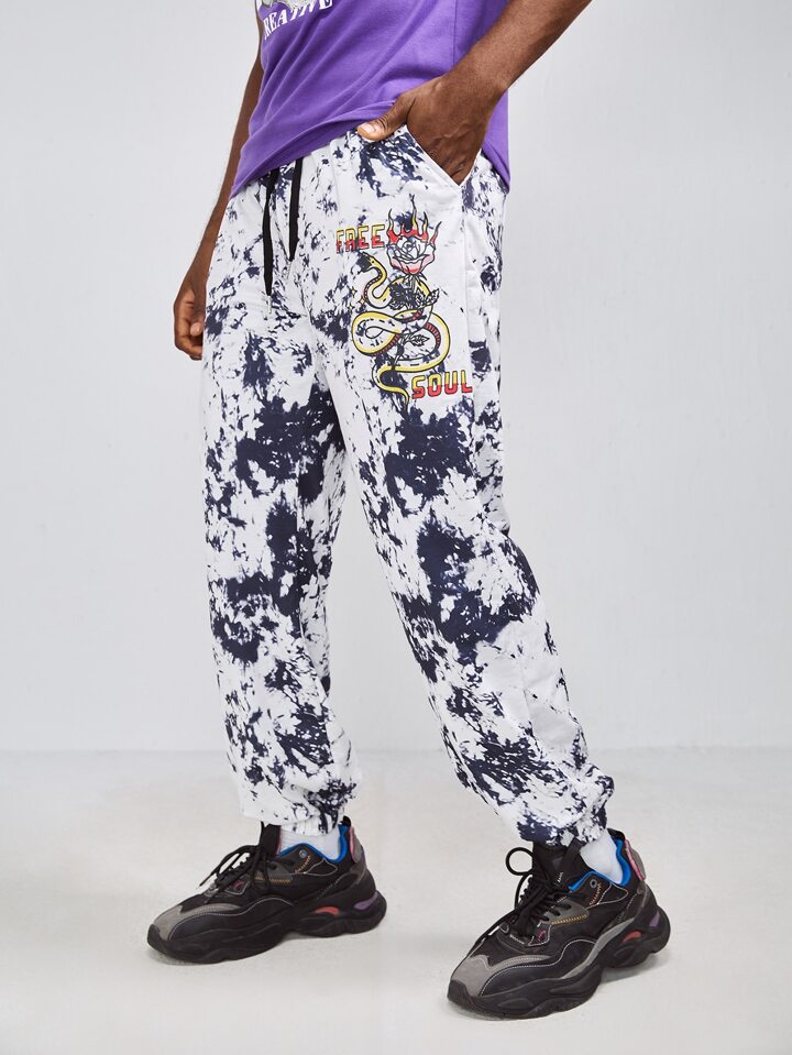 Homme Pantalon de survêtement à motif de lettre et de serpent graphique tie dye
