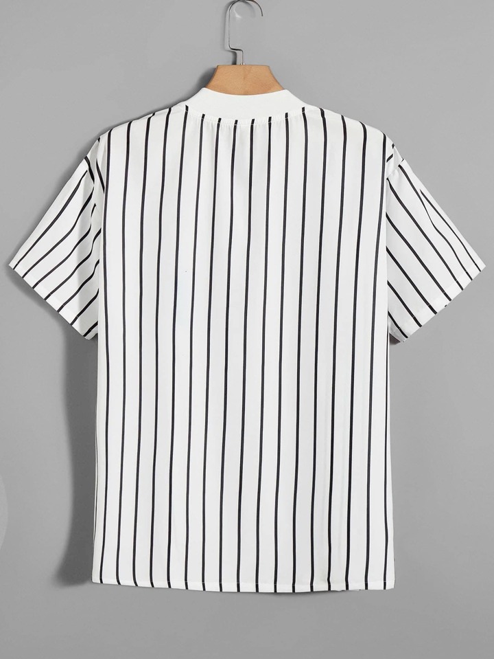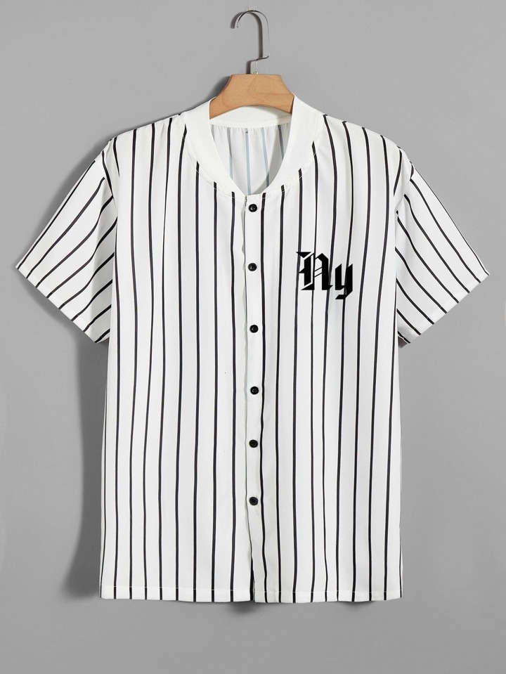 Homme Chemise lettre à rayures à bouton à col base-ball