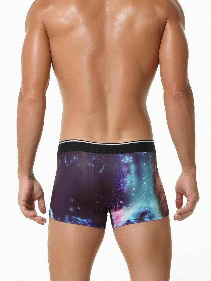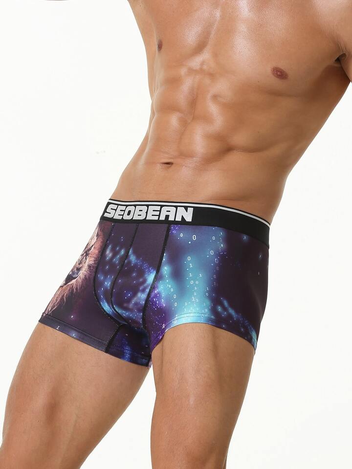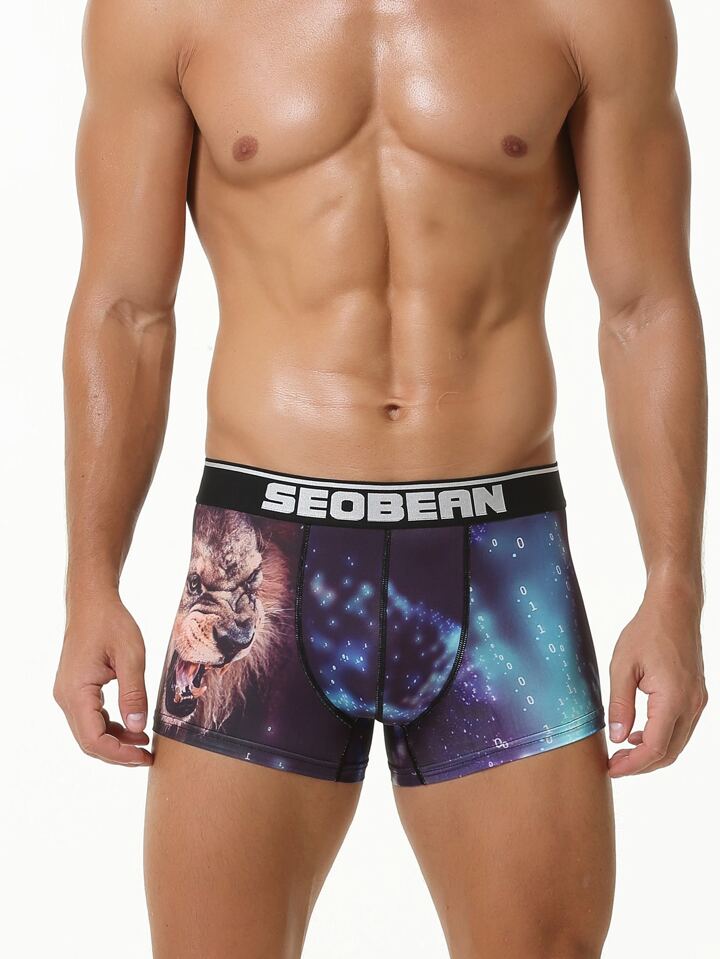 Homme Caleçon à imprimé galaxie et lion contrastant à lettres