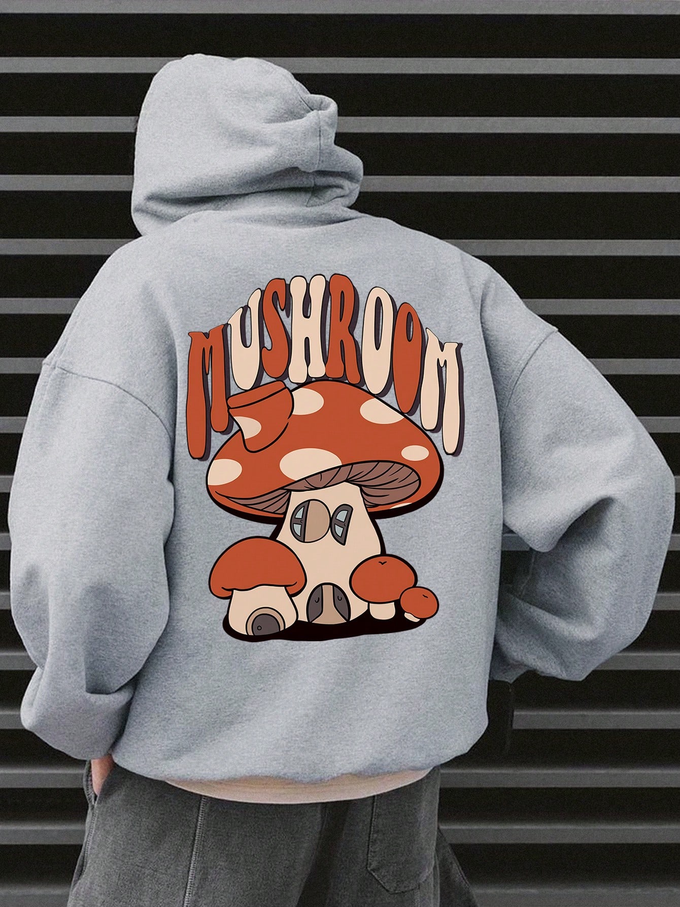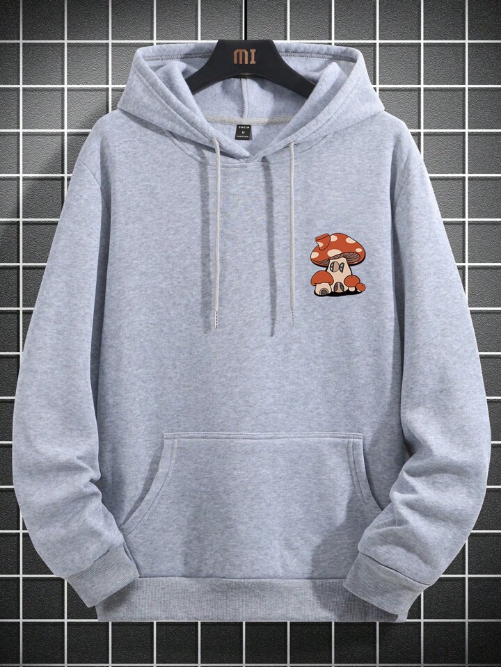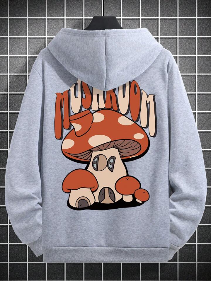 Homme Sweat-Shirt À Capuche Champignon & À Lettres Épaule tombante À Cordon