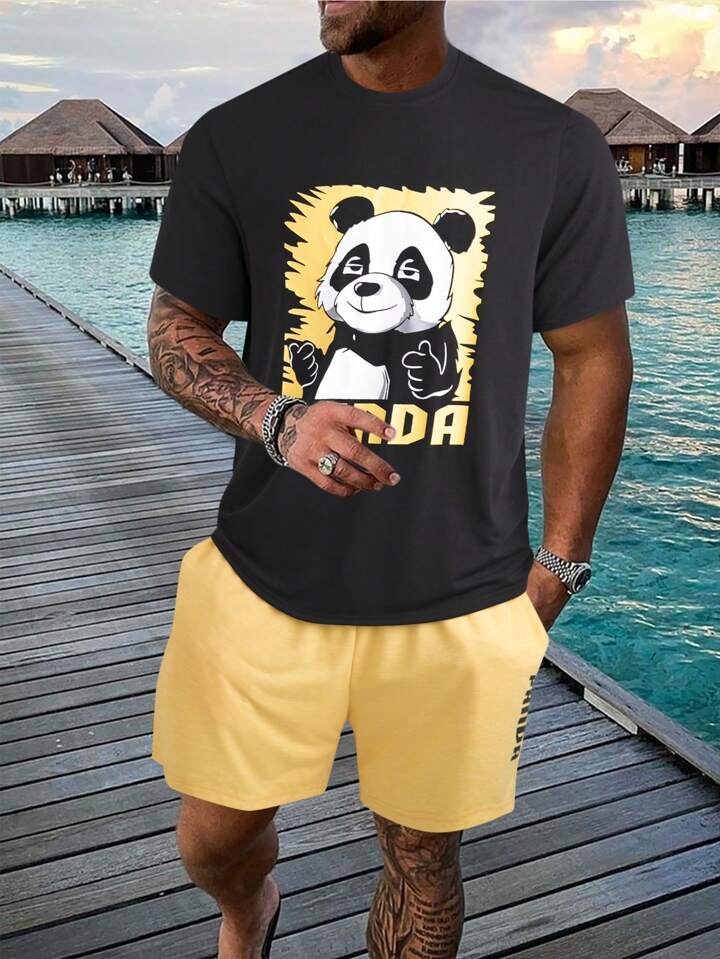 Homme Motif Panda Et Lettre T-shirt & À Cordon Short