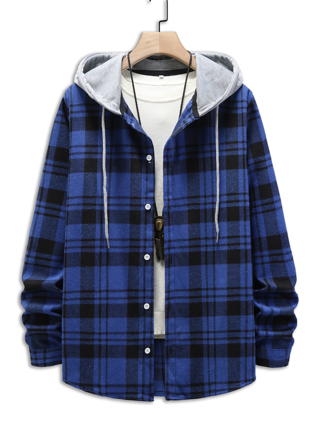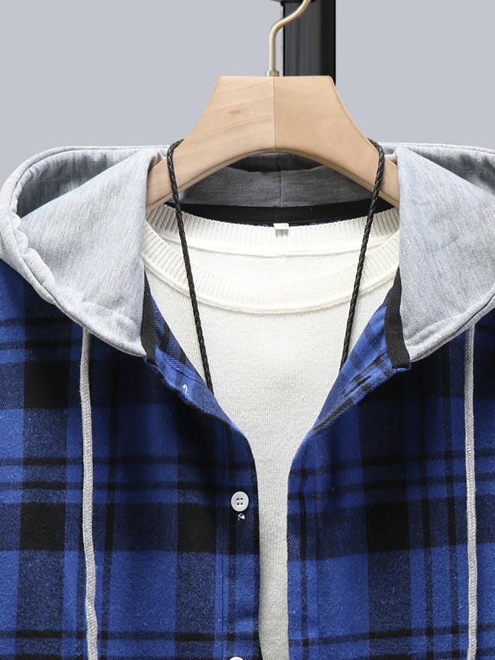 Homme Chemise à carreaux à cordon à capuche (sans t-shirt)