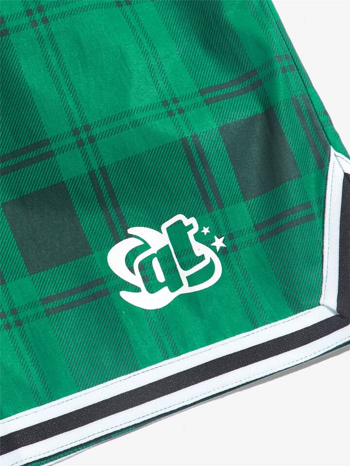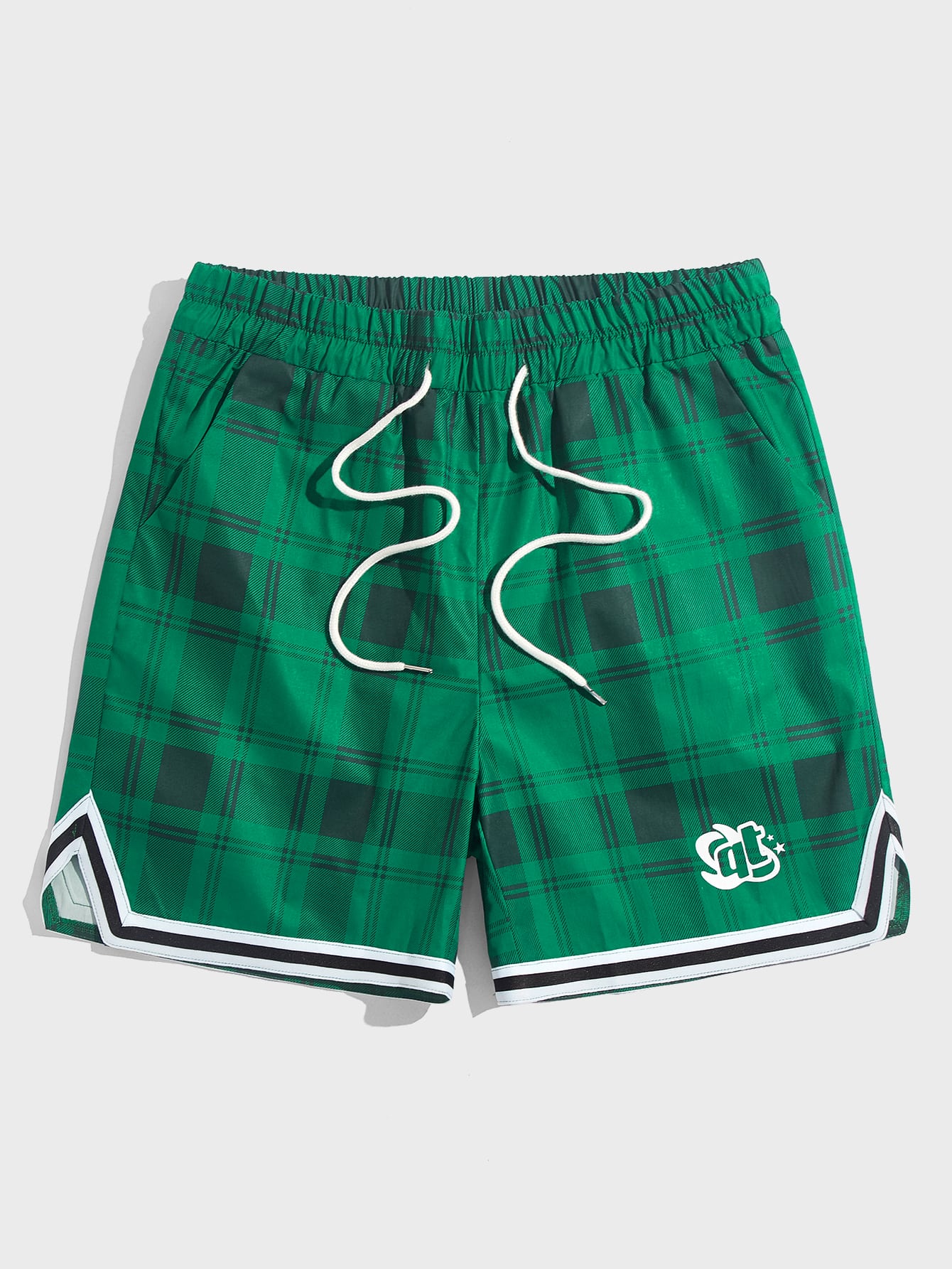 Homme Short à carreaux à lettres à ourlet à rayures à cordon