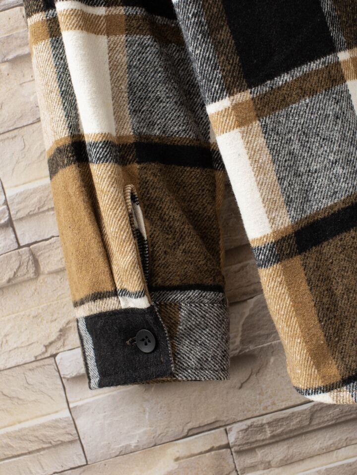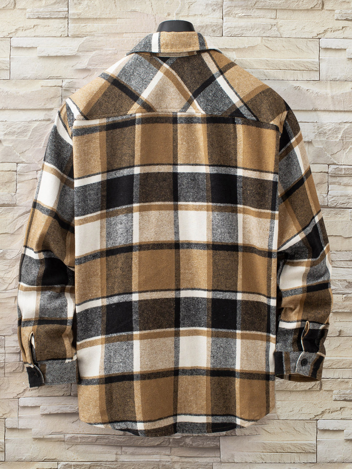 Manteau Pour Hommes À Carreaux Avec Poches Patchées, Sans Tee-shirt