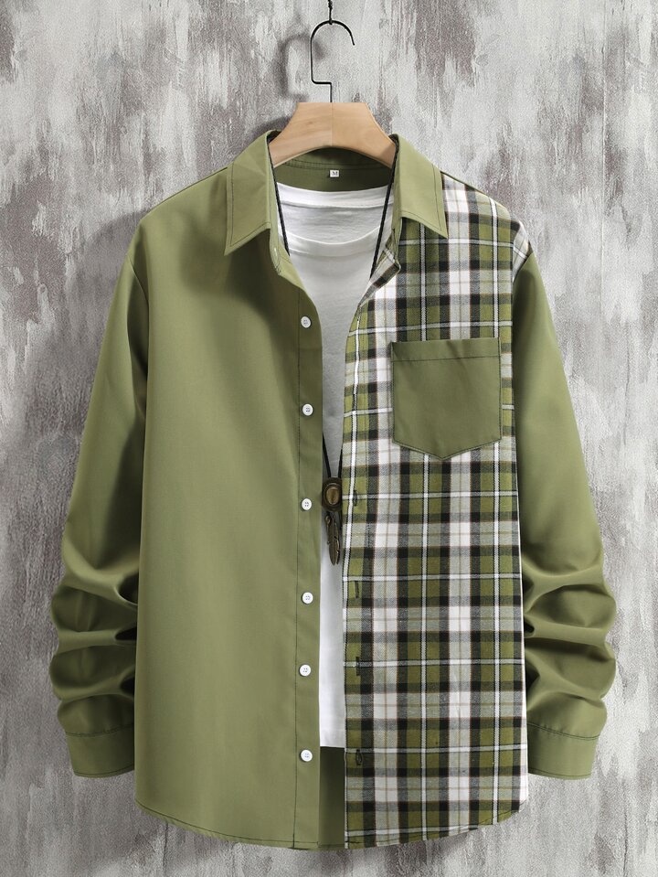 Homme Chemise à carreaux patch à poche (sans t-shirt)