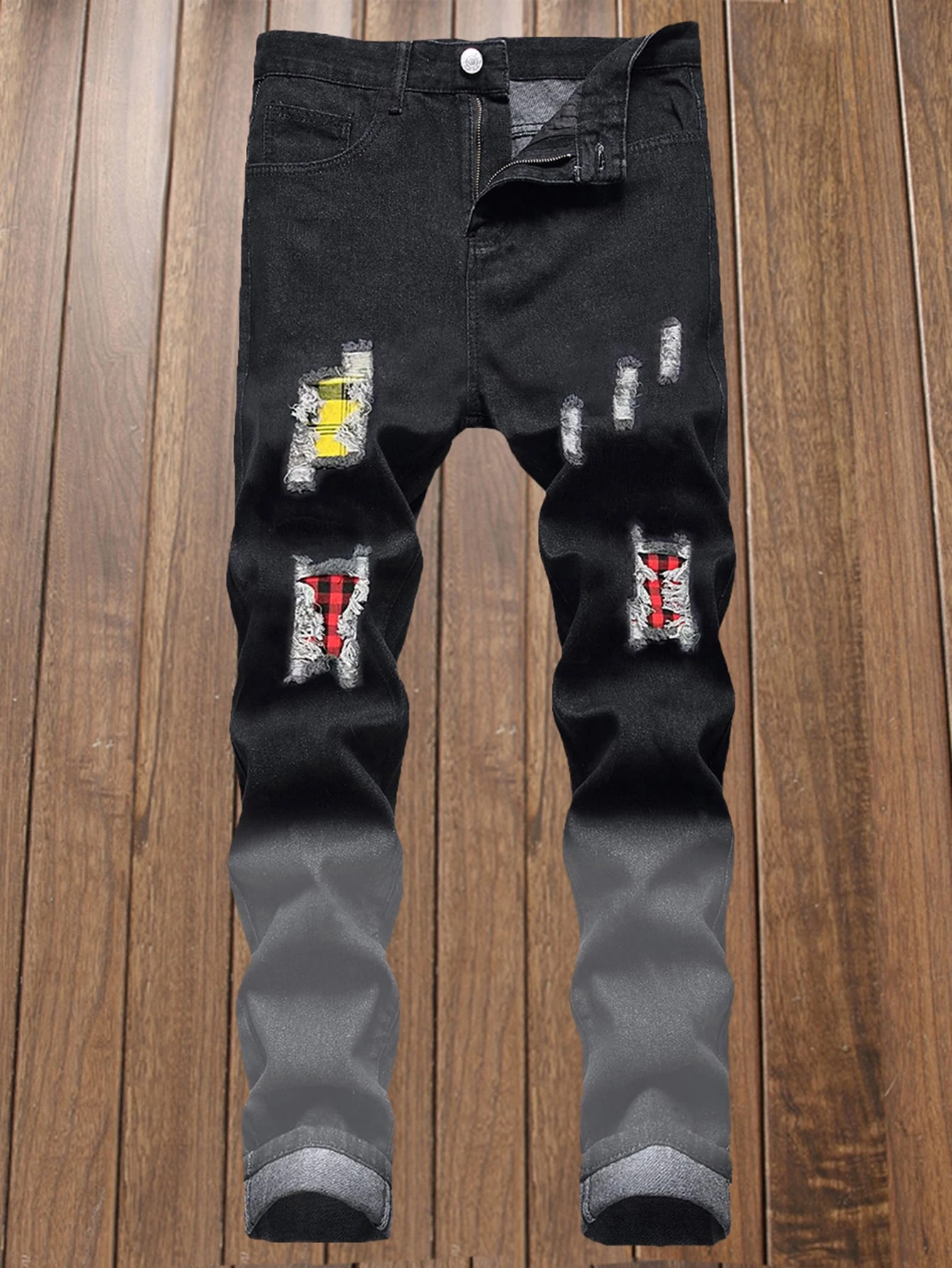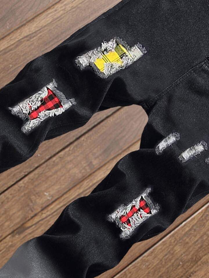 Homme Jean déchiré à carreaux