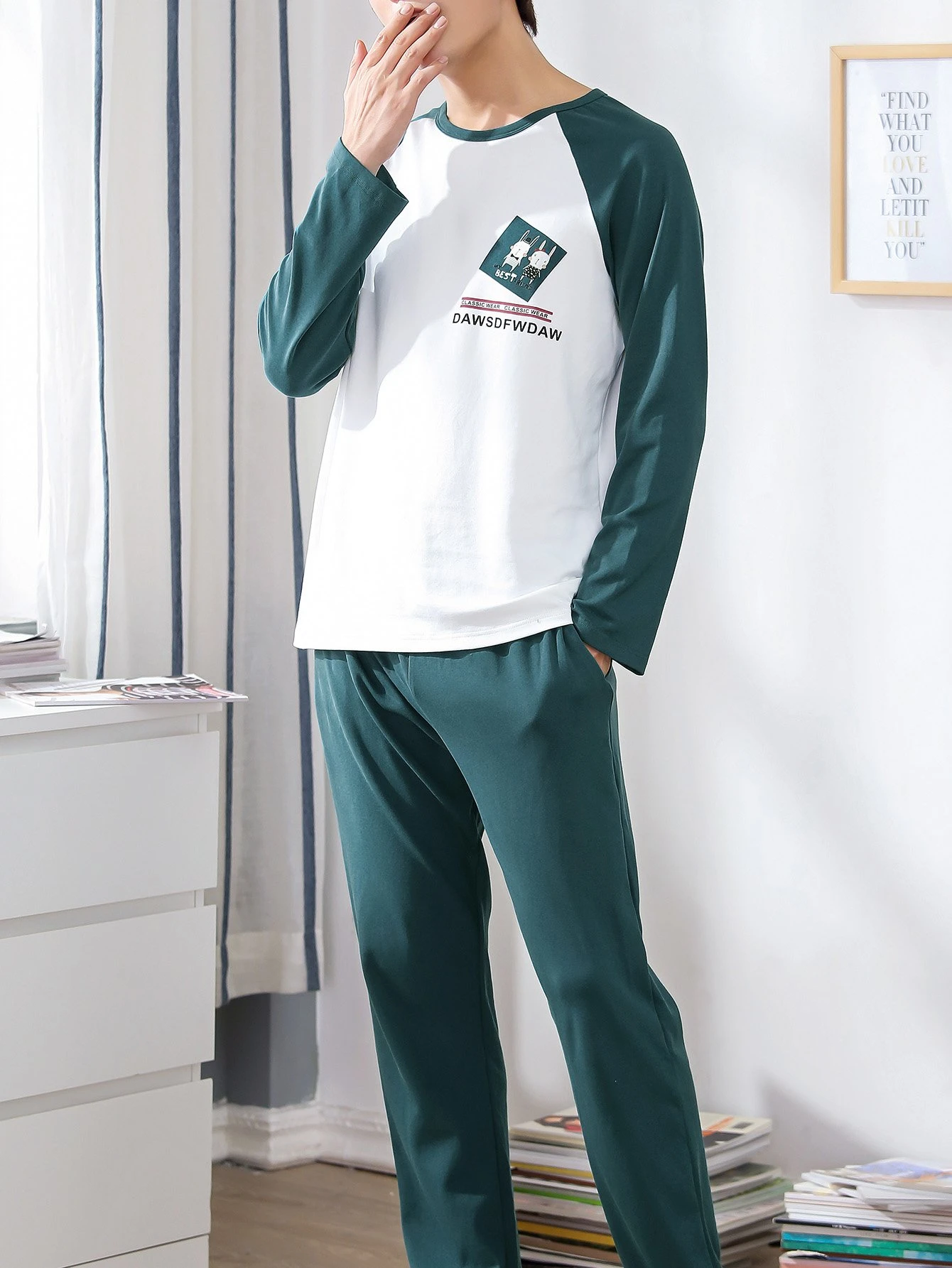 Homme Ensemble de pyjama imprimé lapin à color-block