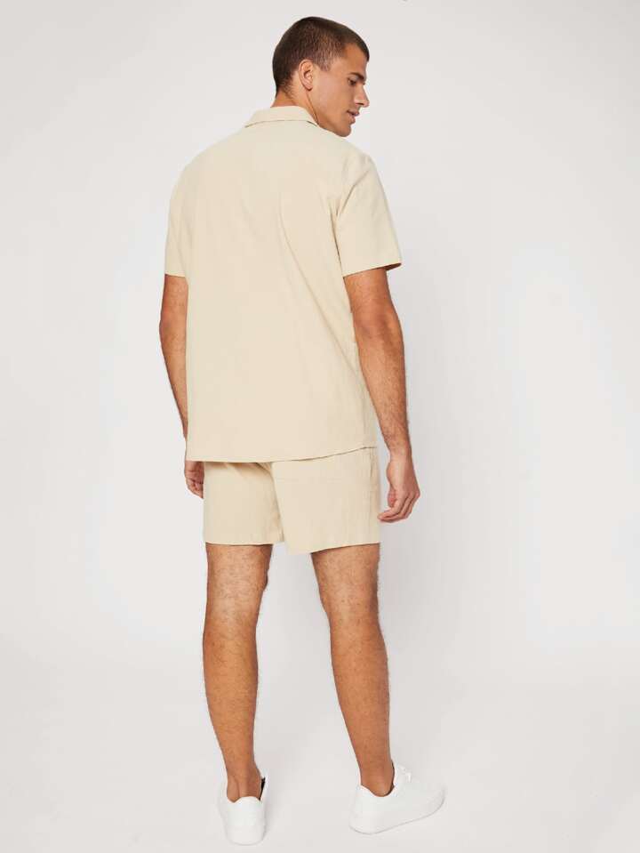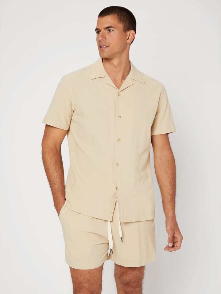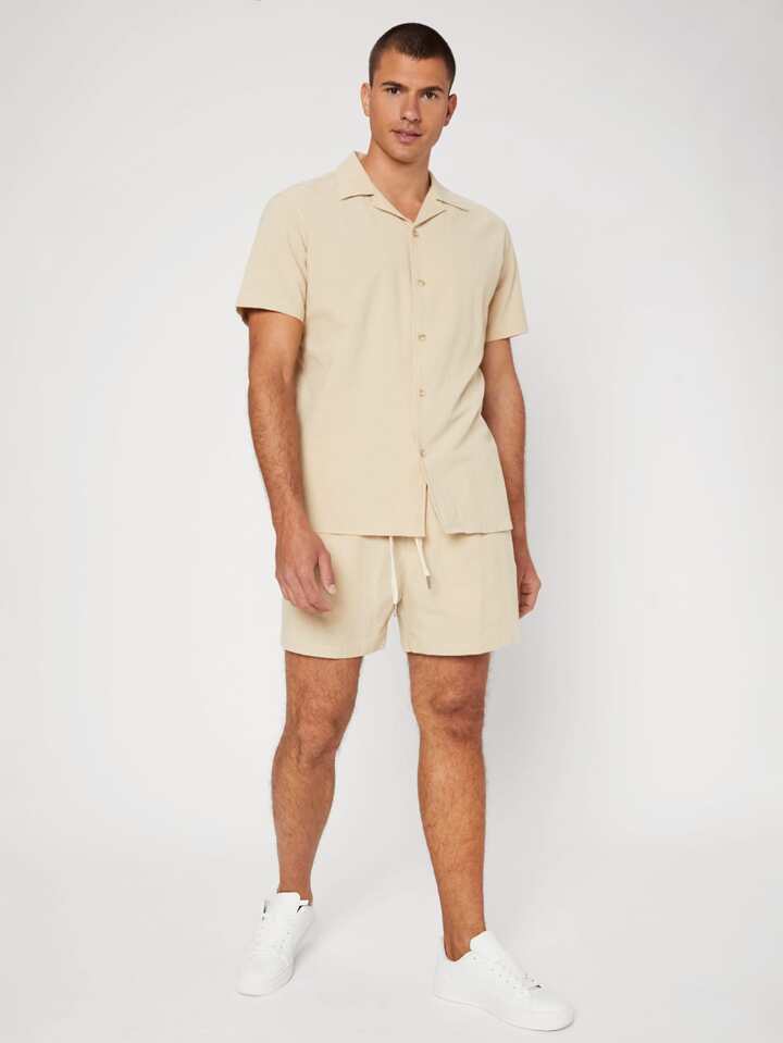 Ensemble chemise et short en coton unicolore col châle pour homme