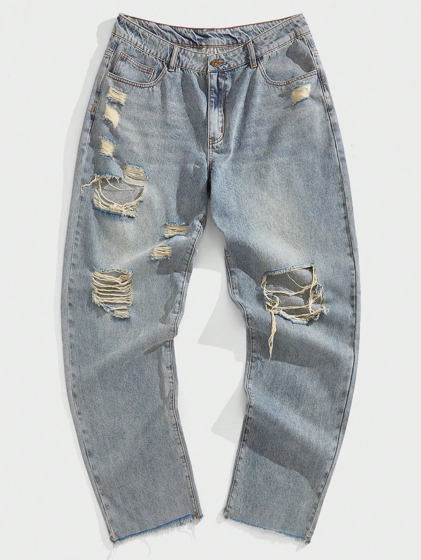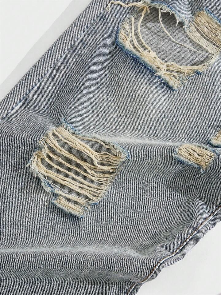Homme Jean En Coton Déchiré Effiloché À Ourlet Effiloché