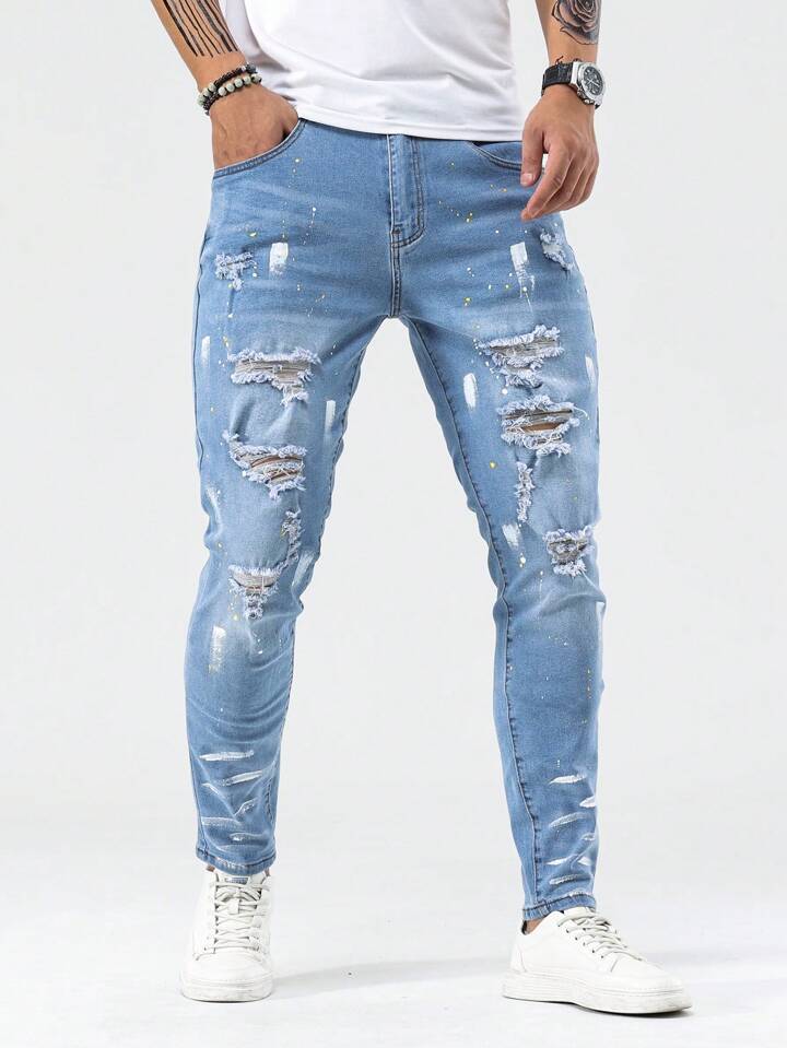 Homme Jean Skinny En Coton Déchiré Effiloché