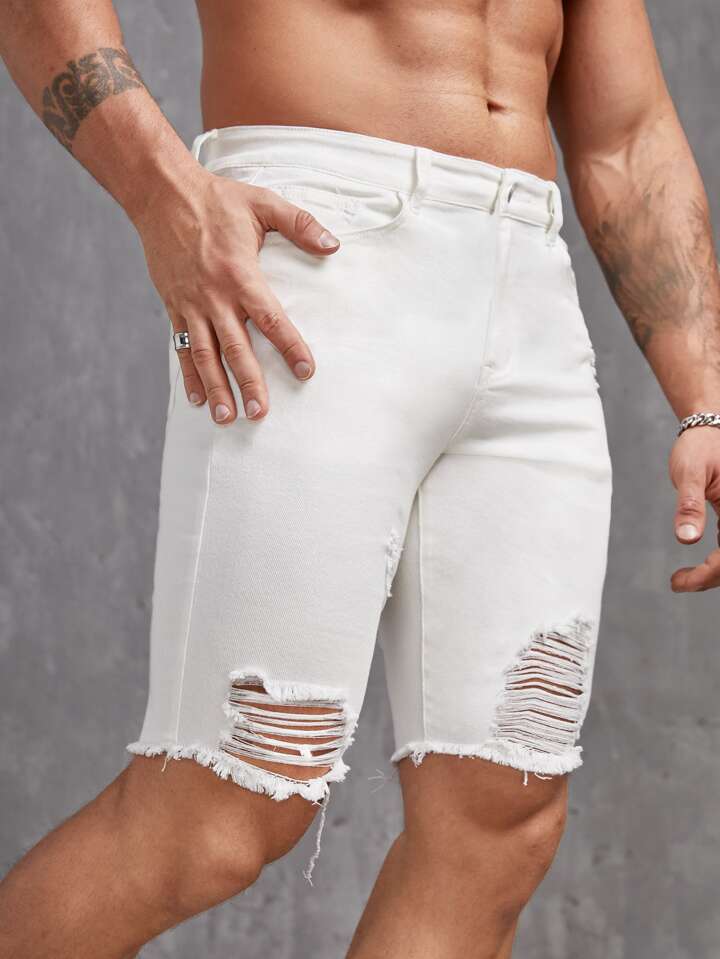 Homme Short en jean déchiré effiloché