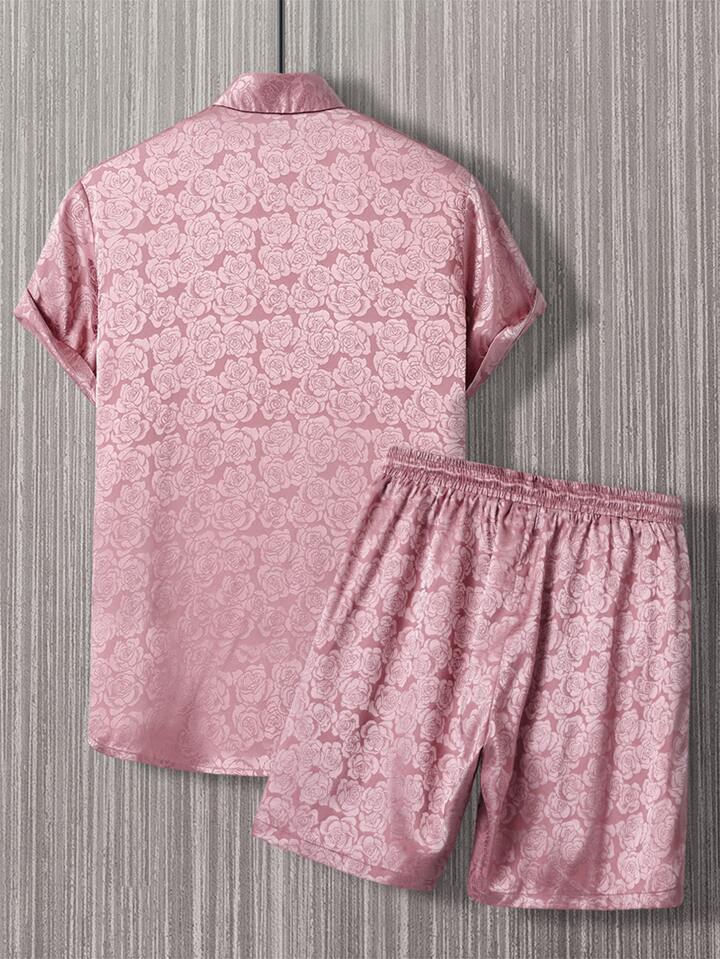 Homme rose en jacquard Chemise & à cordon Short (sans t-shirt)