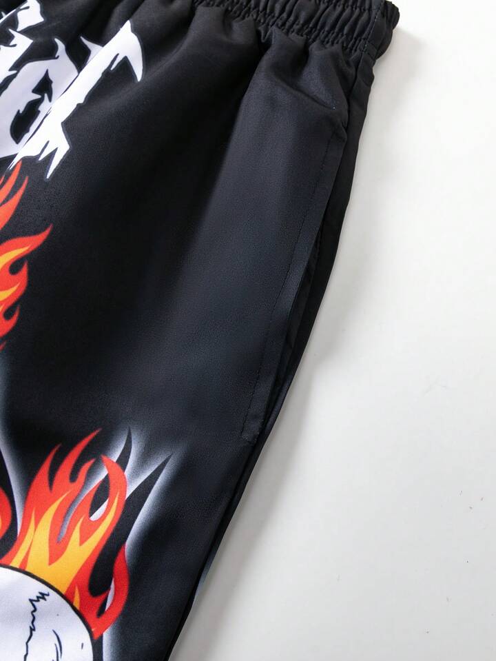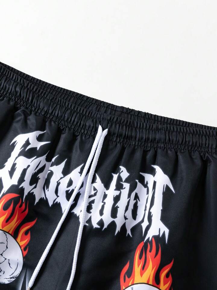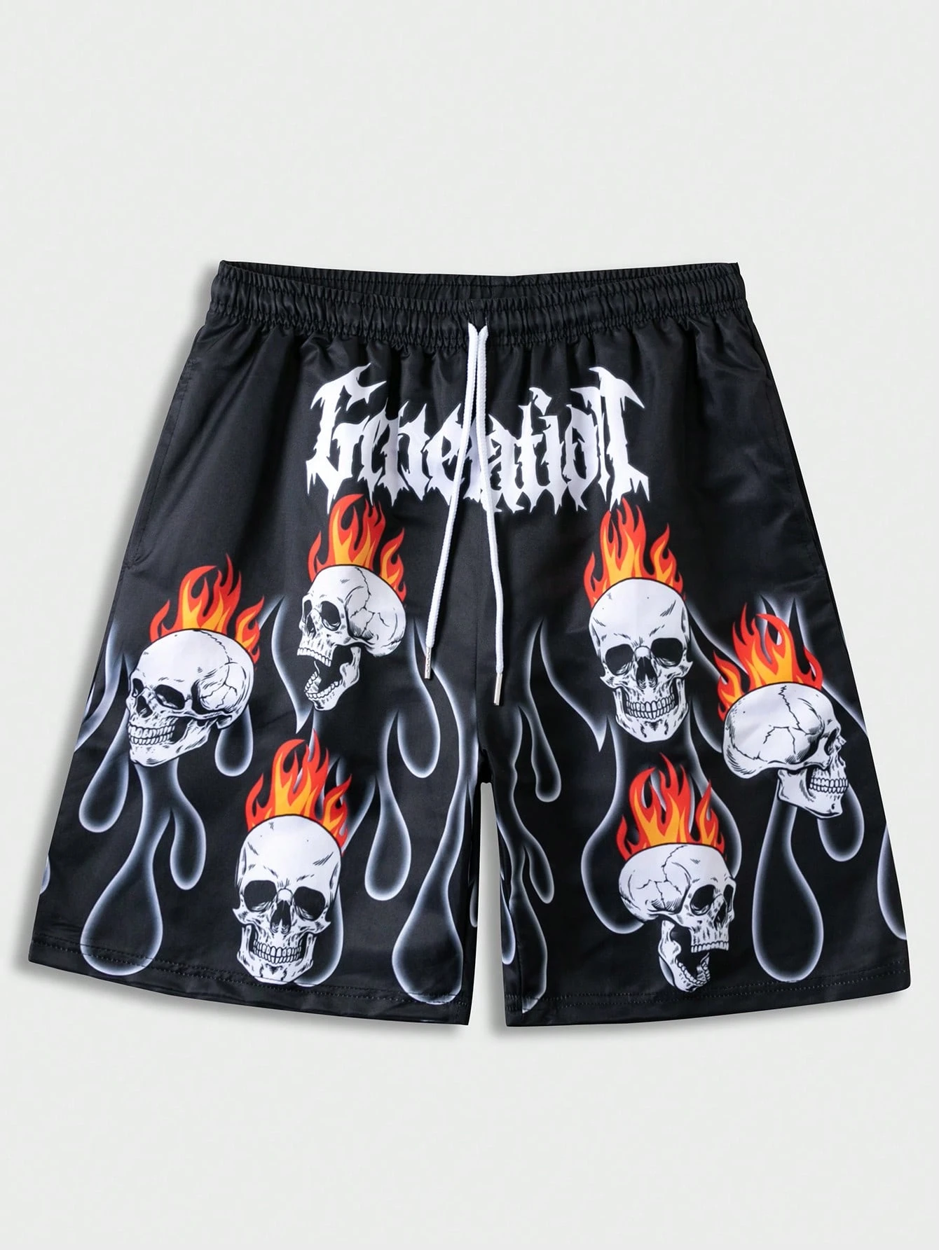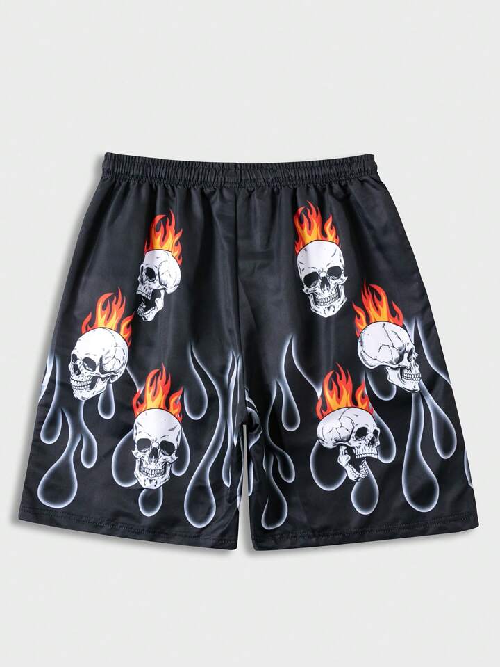 Homme Short Tête De Mort & Imprimé Flamme À Cordon