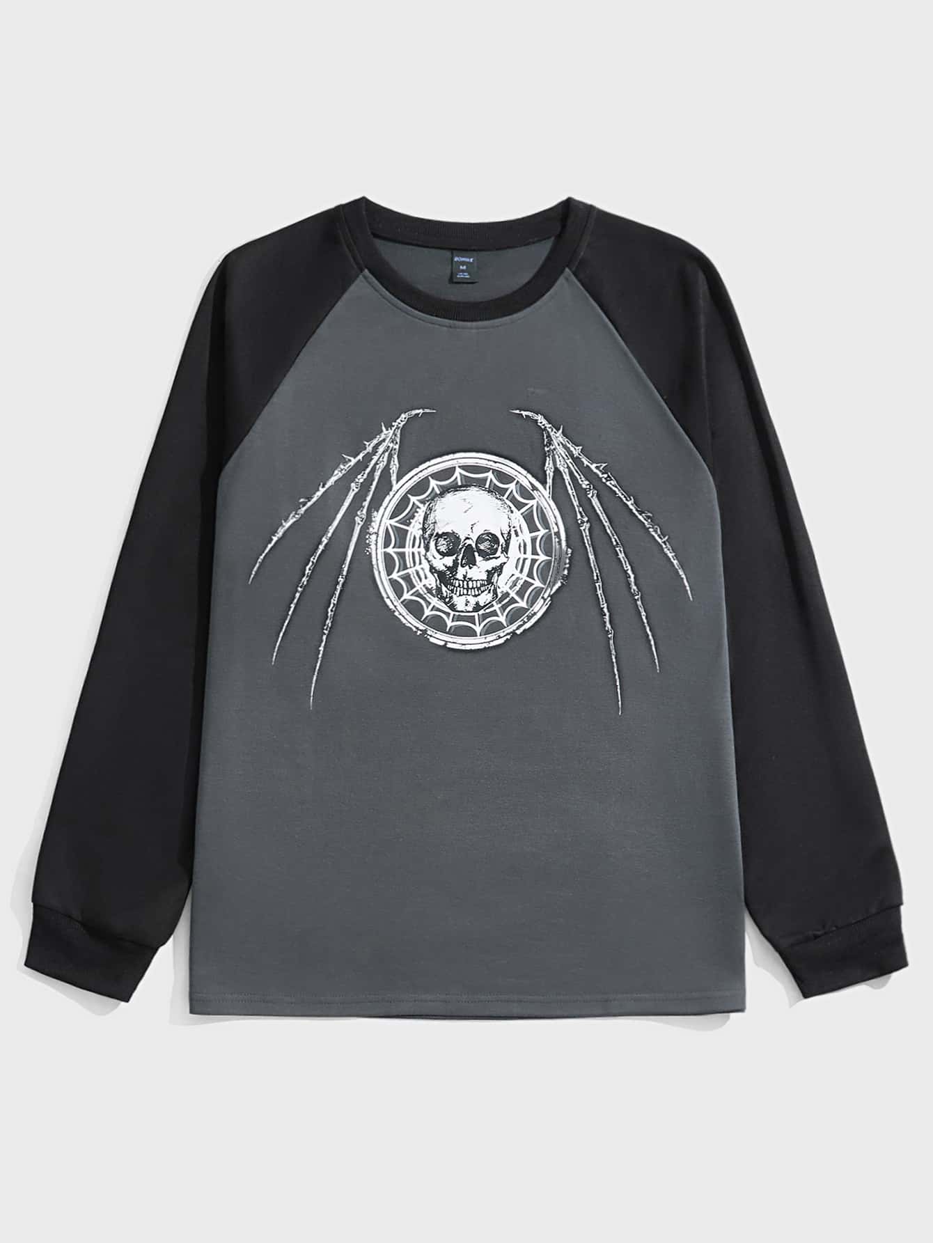 Homme T-shirt à motif tête de mort à blocs de couleurs à manches raglan