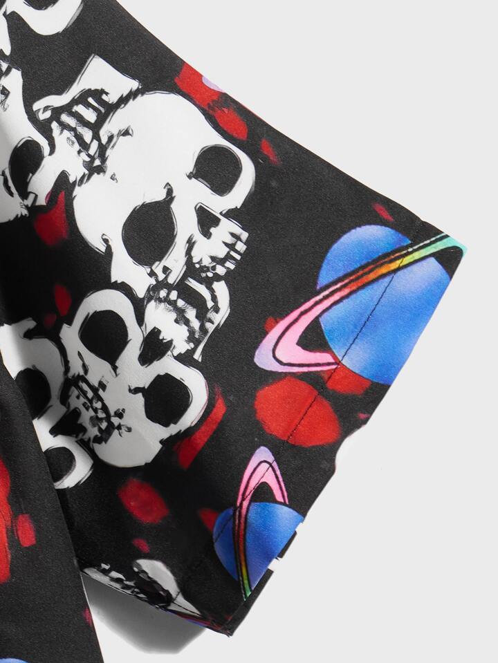 Homme Chemise tête de mort & à imprimé planète à bouton