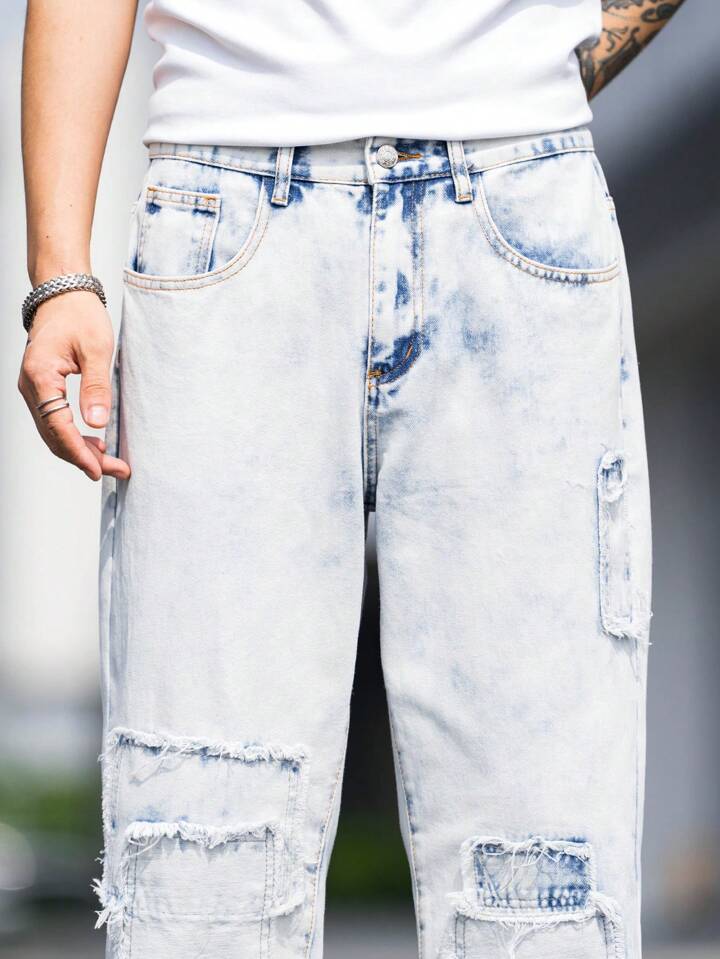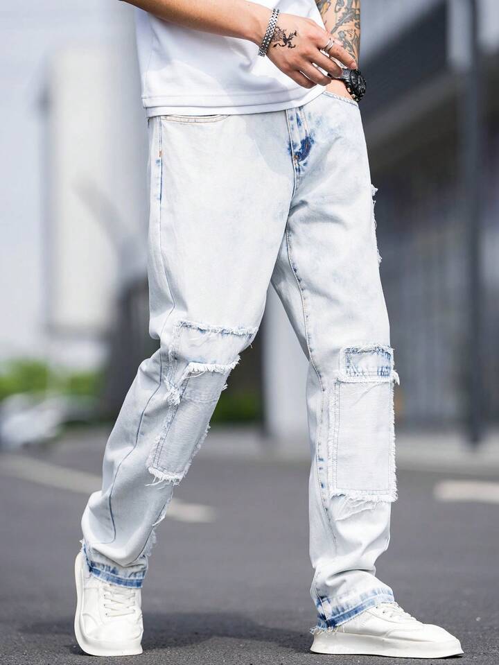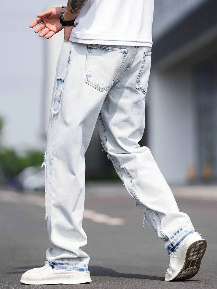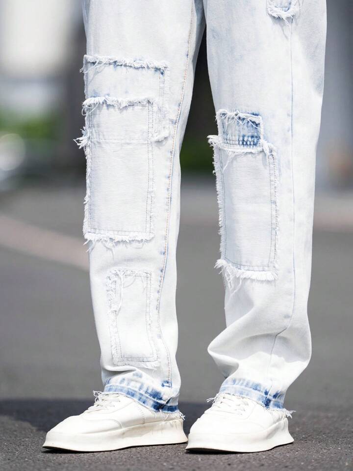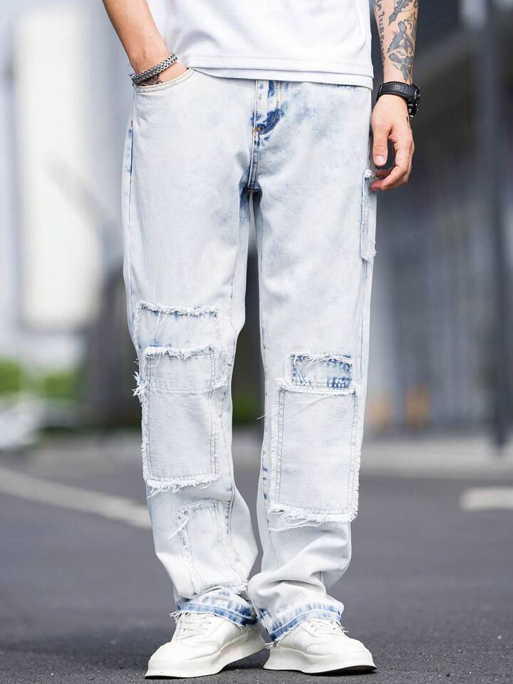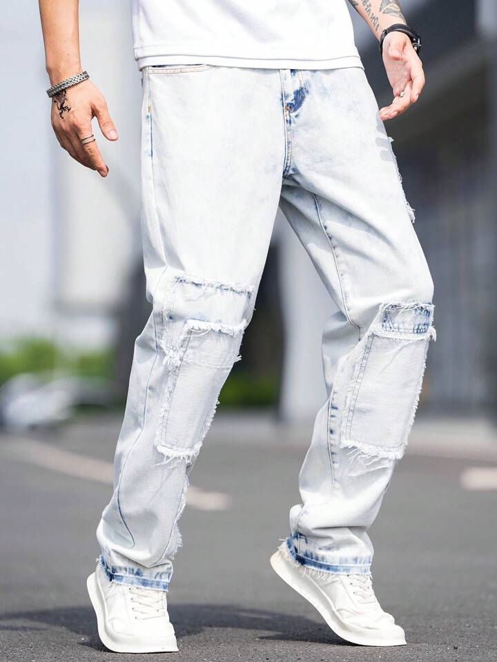 Homme Jean Droit À Poche Ourlet Effiloché