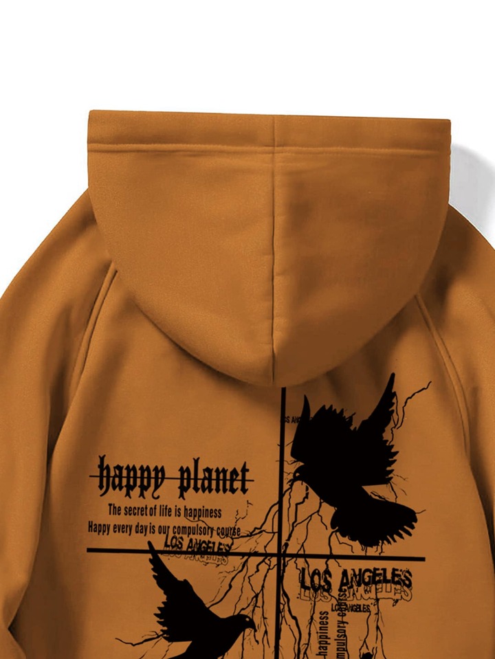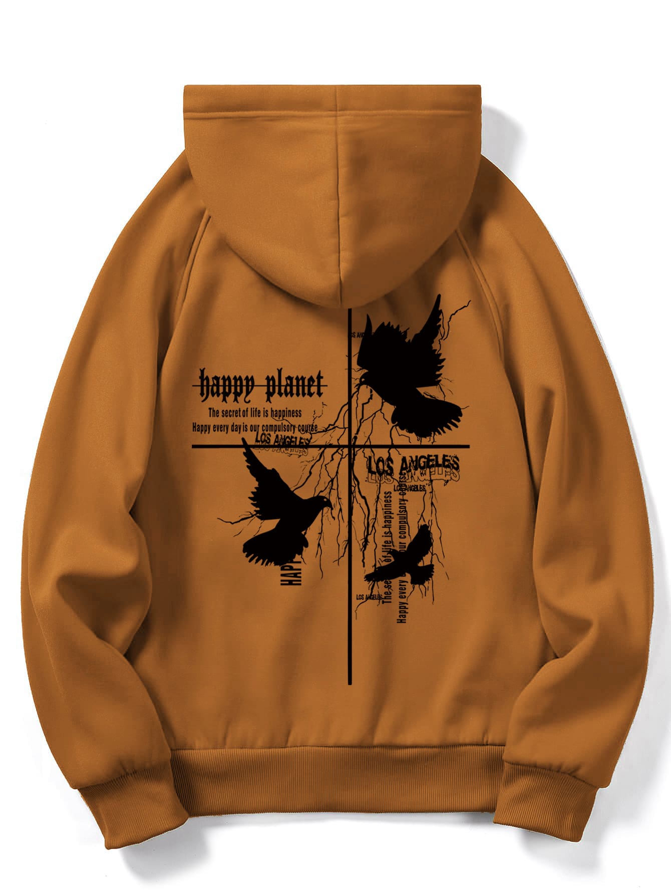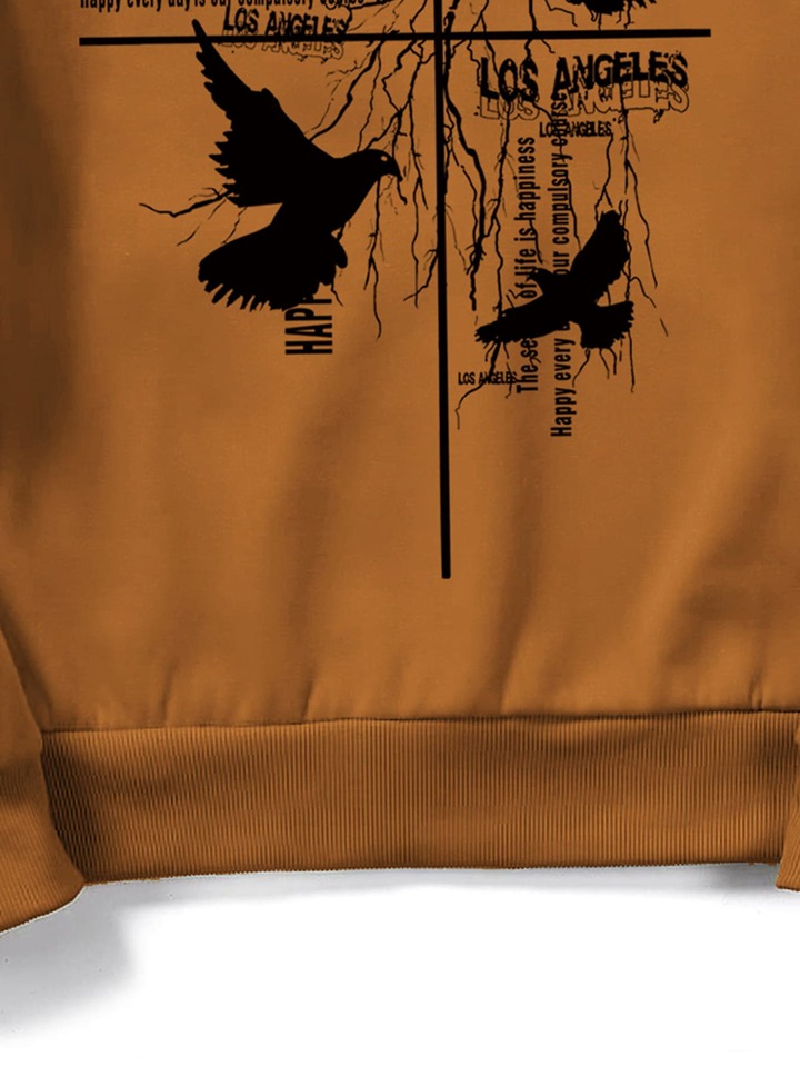 Homme Sweat-shirt à capuche thermique slogan & à imprimé oiseaux manches raglan à cordon