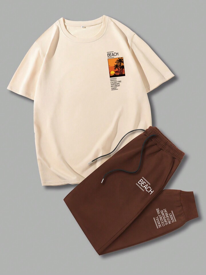Homme Graphique De Slogan T-shirt & À Cordon Pantalon De Survêtement