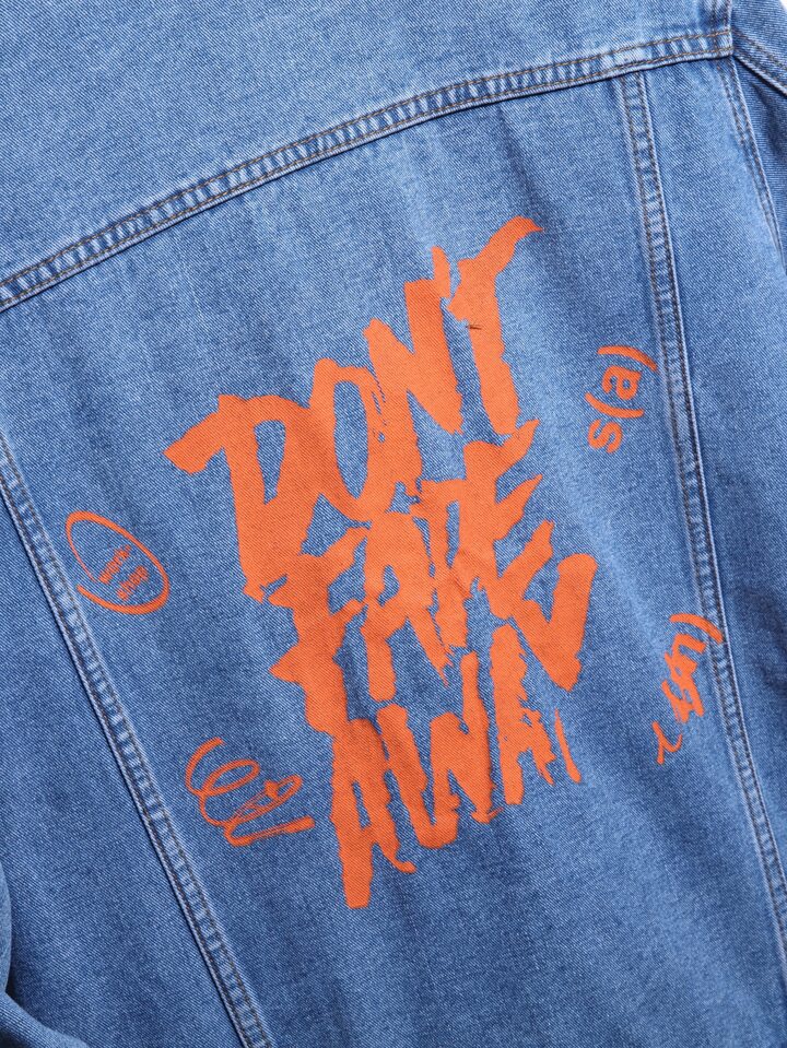Homme Veste en jean slogan poche à rabat (sans t-shirt)