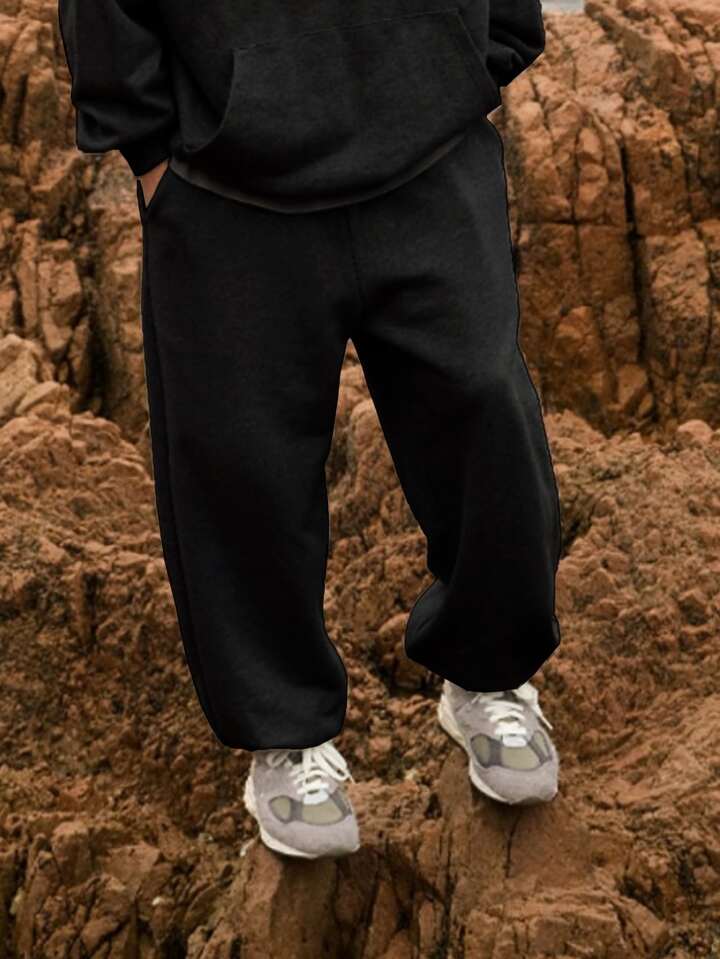 Pantalon de jogging ample pour hommes avec poches en biais de couleur unie