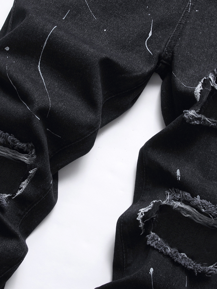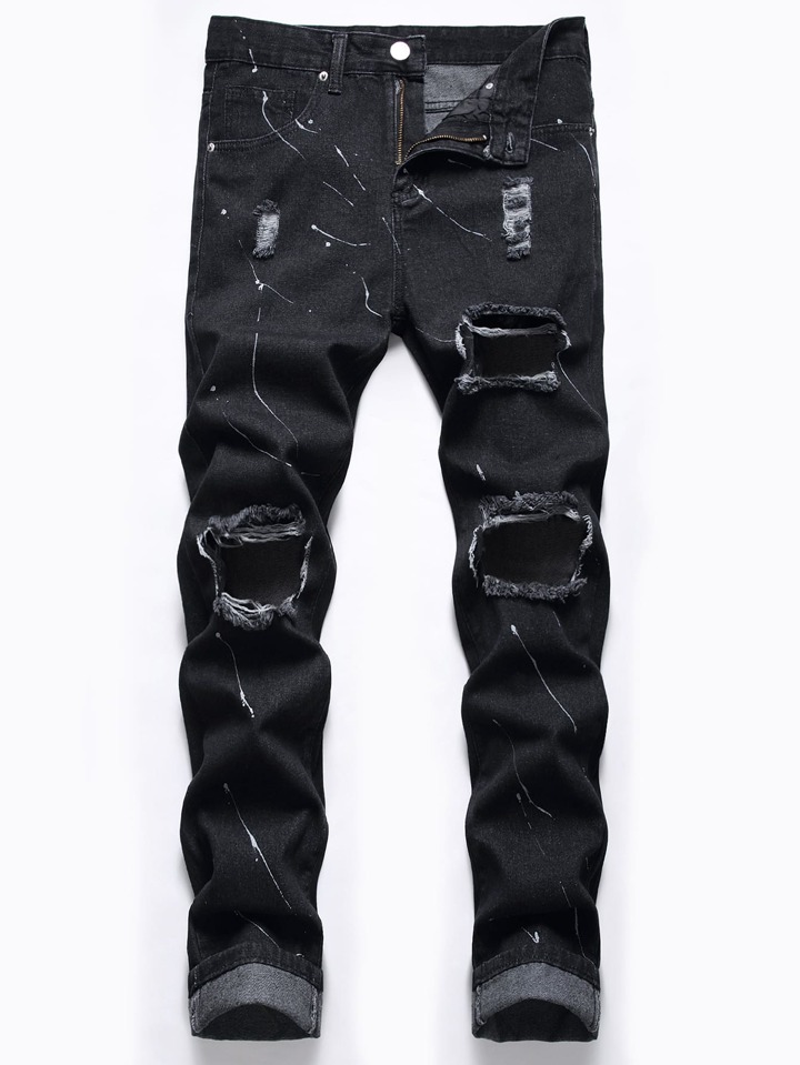 Homme Jean skinny déchiré à imprimé encre d'éclaboussure