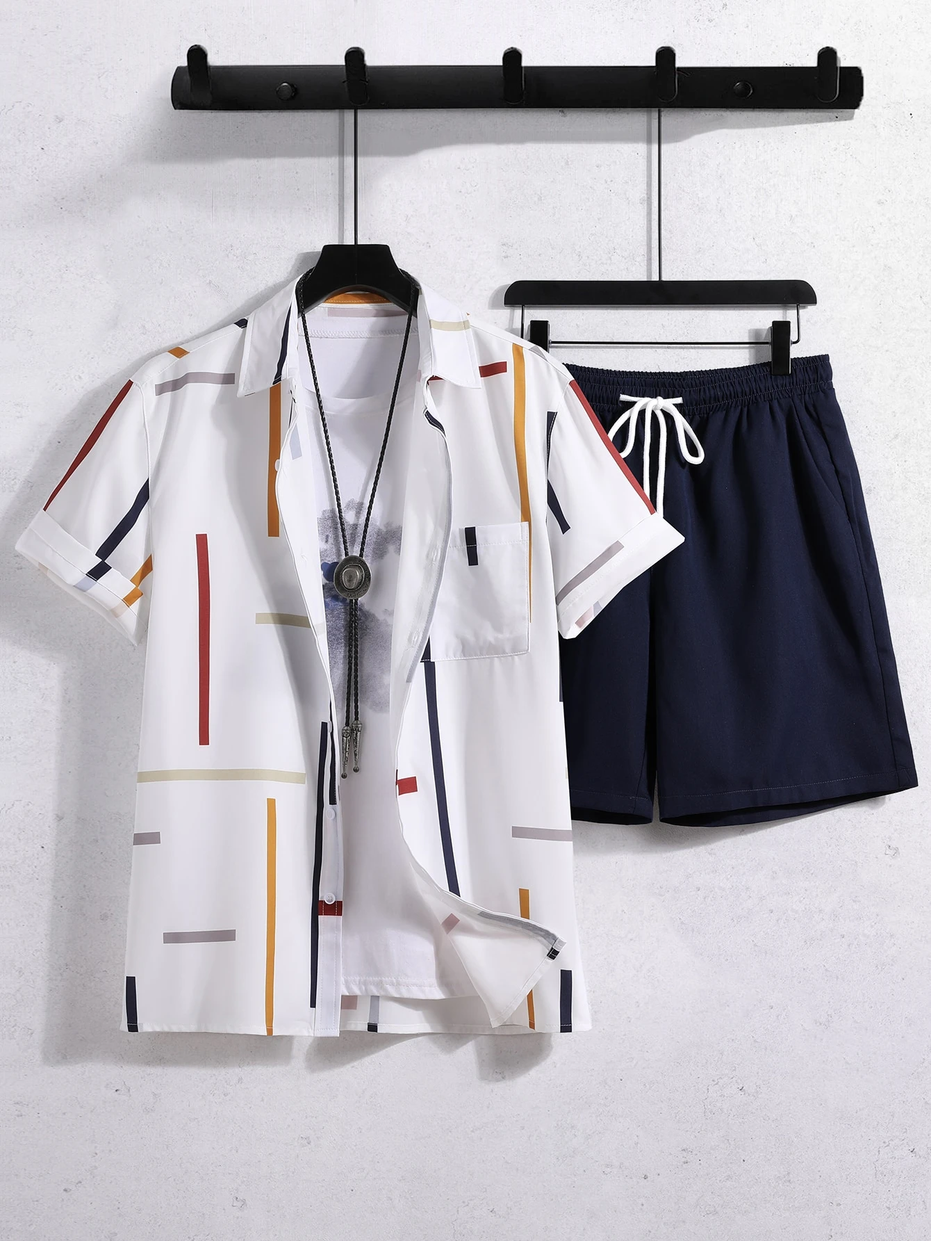 Homme Chemise à rayures & Short à cordon (sans t-shirt)