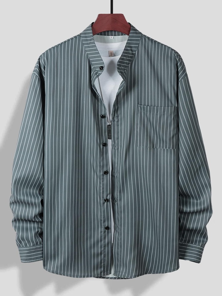 Chemise À Rayures Pour Hommes, Drop Shoulder, Coupe Ample Et Imprimée
