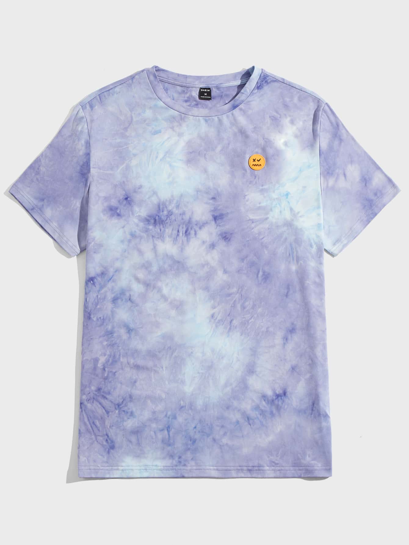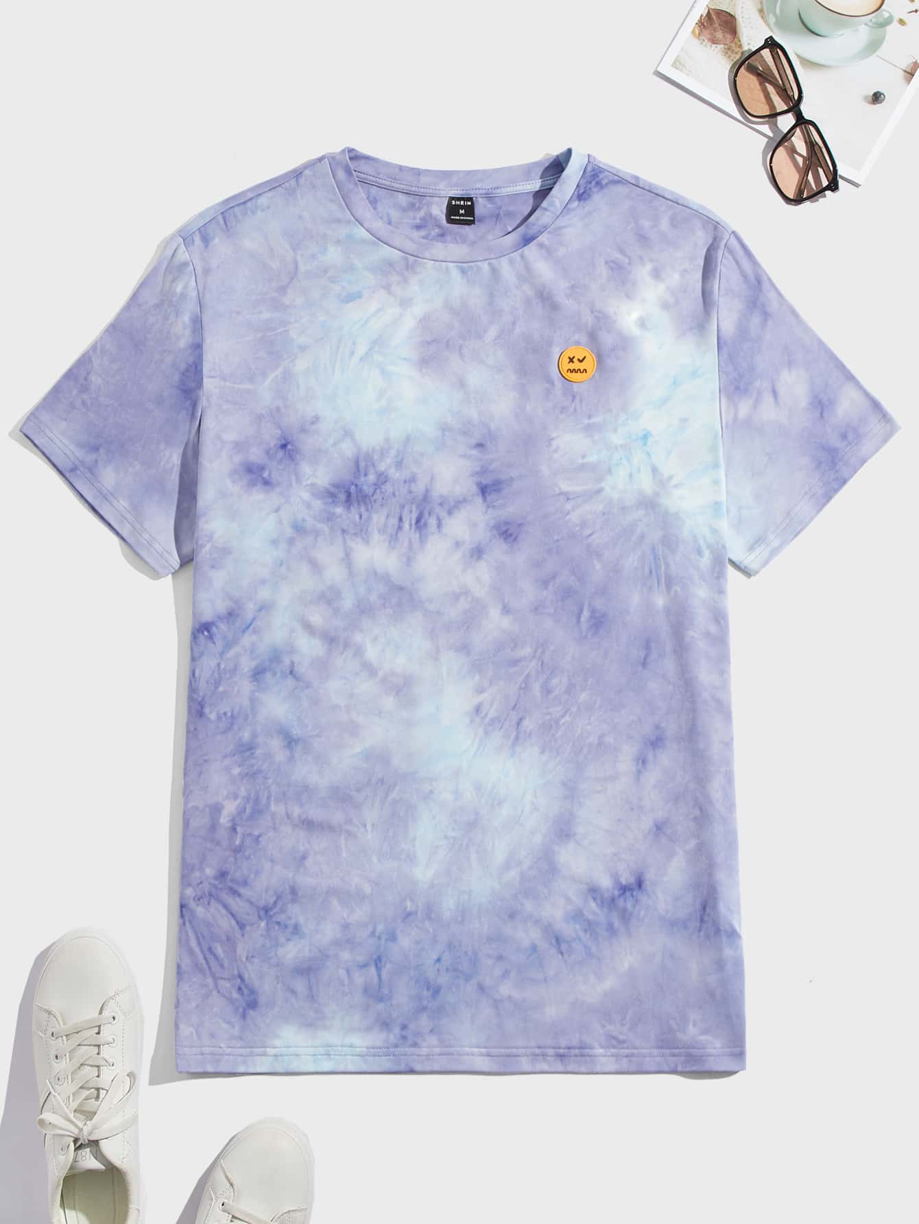 Homme T-shirt tie dye à imprimé visage dessin animé