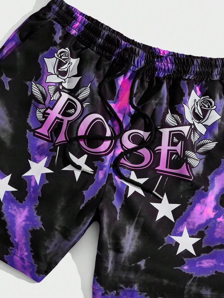 Homme Short tie dye Étoile & À Lettres À Cordon