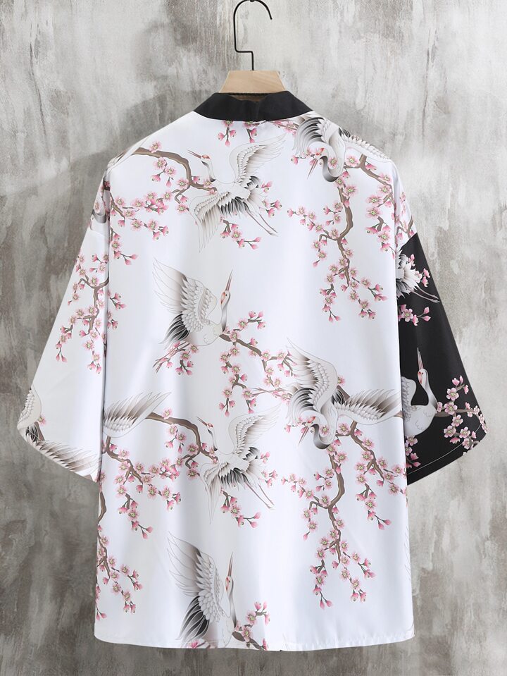 Homme Kimono bicolore à imprimé fleuri et oiseau (sans t-shirt)
