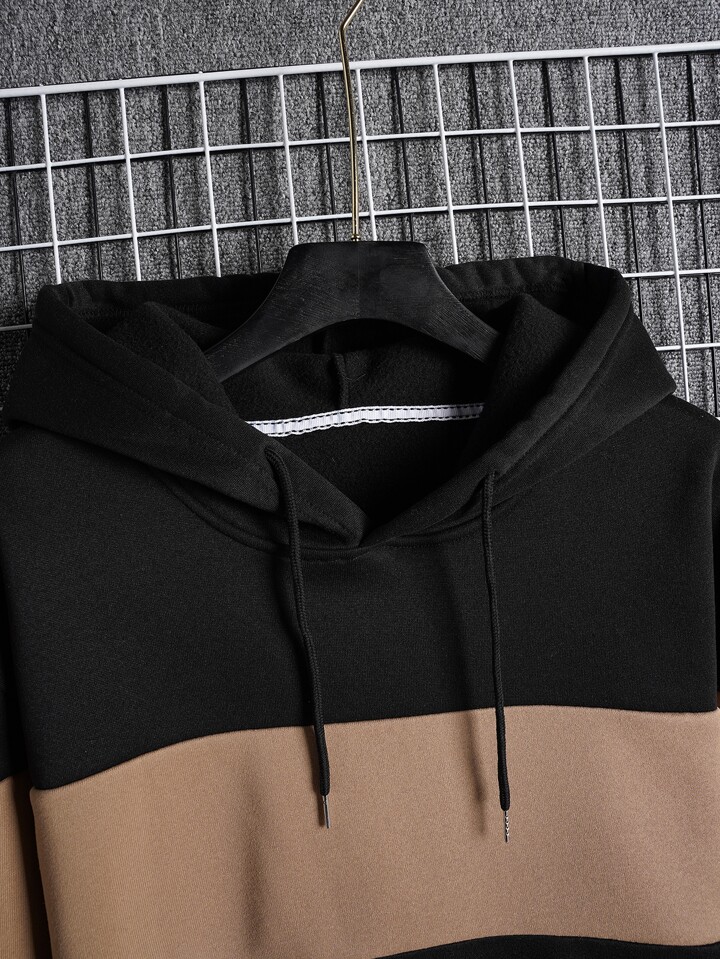Homme Sweat-shirt à capuche bicolore à cordon à doublure thermique