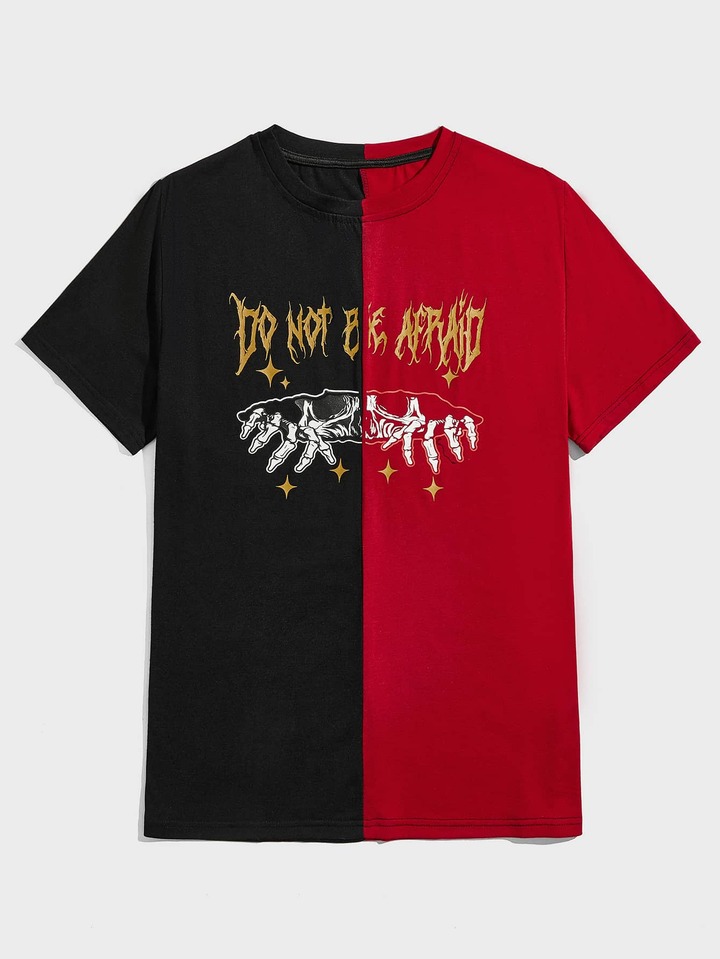 Homme T-shirt Bicolore À Lettres
