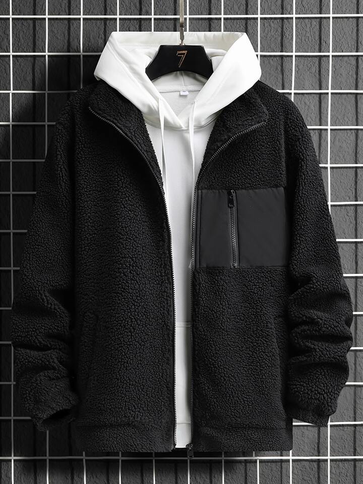 Homme Veste duveteuse zippé sans sweat-shirt à capuche