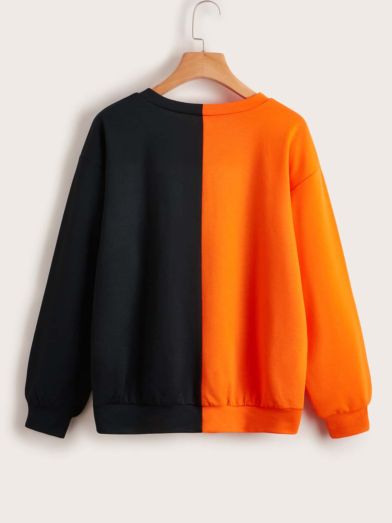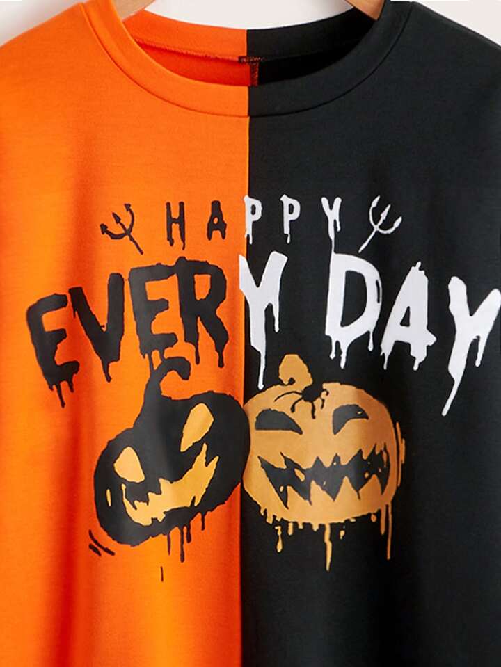 Sweat-shirt à motif halloween lettre à blocs de couleurs