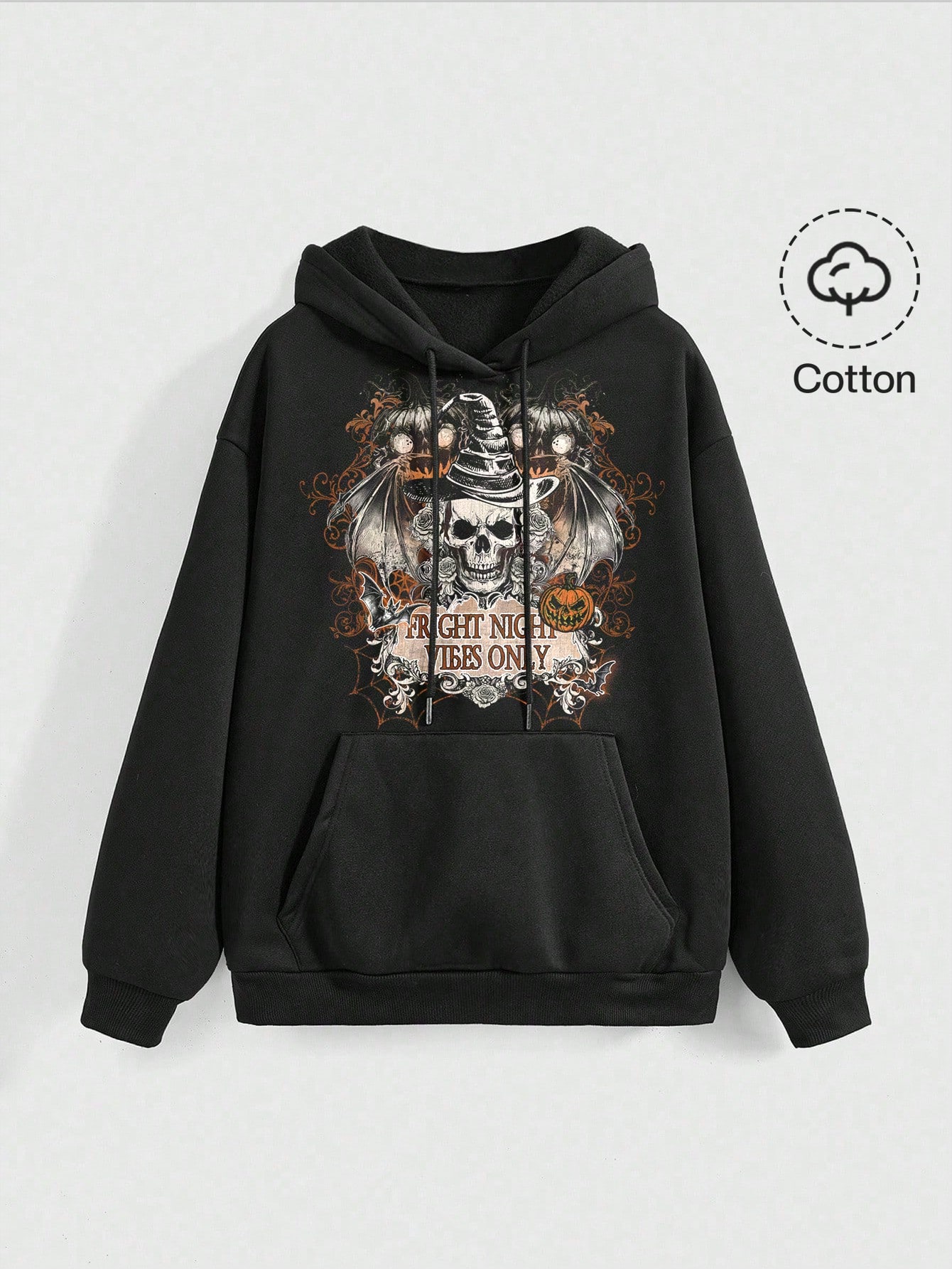 sweat-shirt à capuche ample à imprimé citrouille crâne punk orange et noir pour Halloween, grande taille