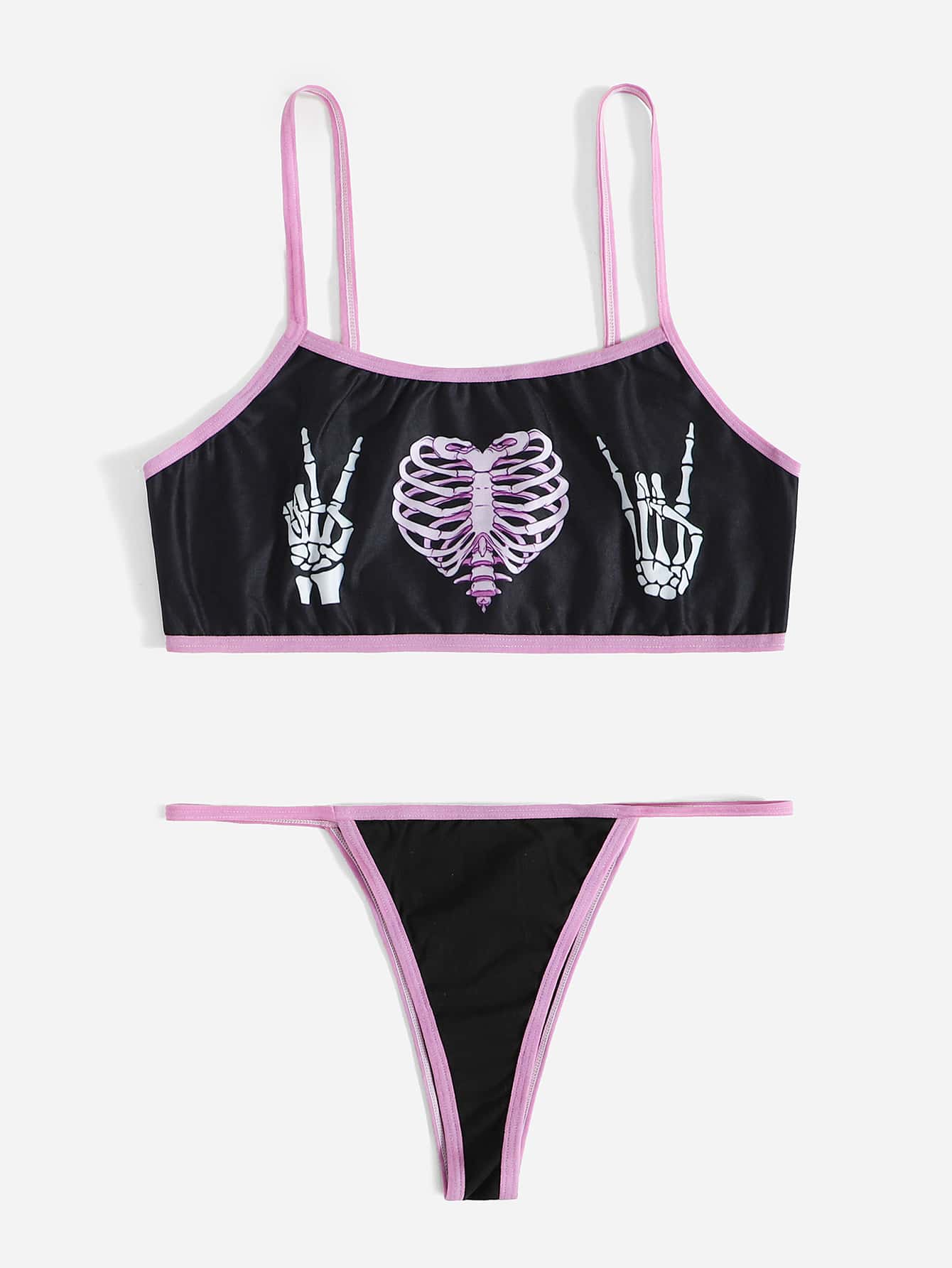 Ensemble de lingerie halloween à imprimé squelette à liseré contrastant