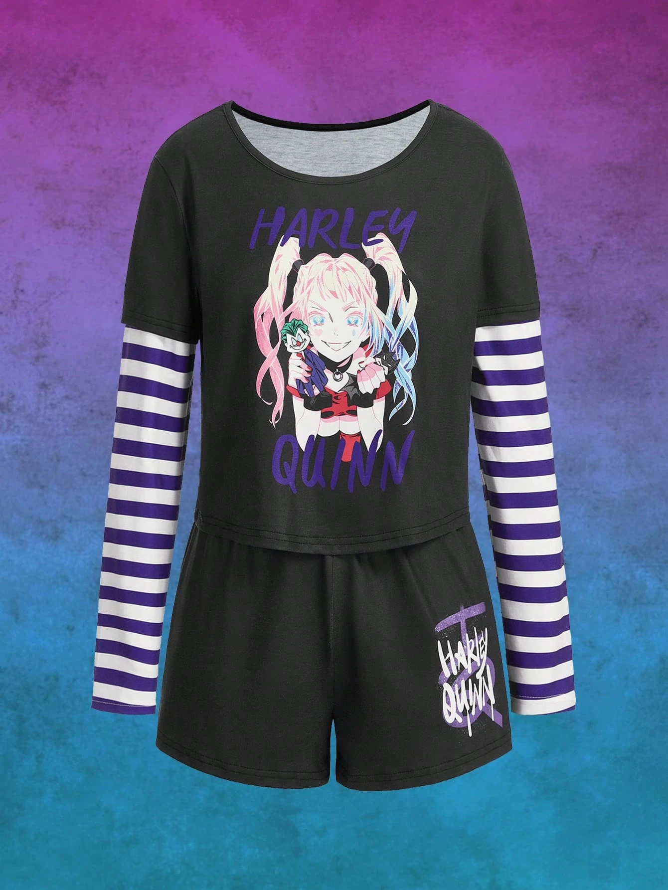Harley Quinn | ROMWE Ensemble De Pyjama 2 en 1 À Rayures Dessin Animé