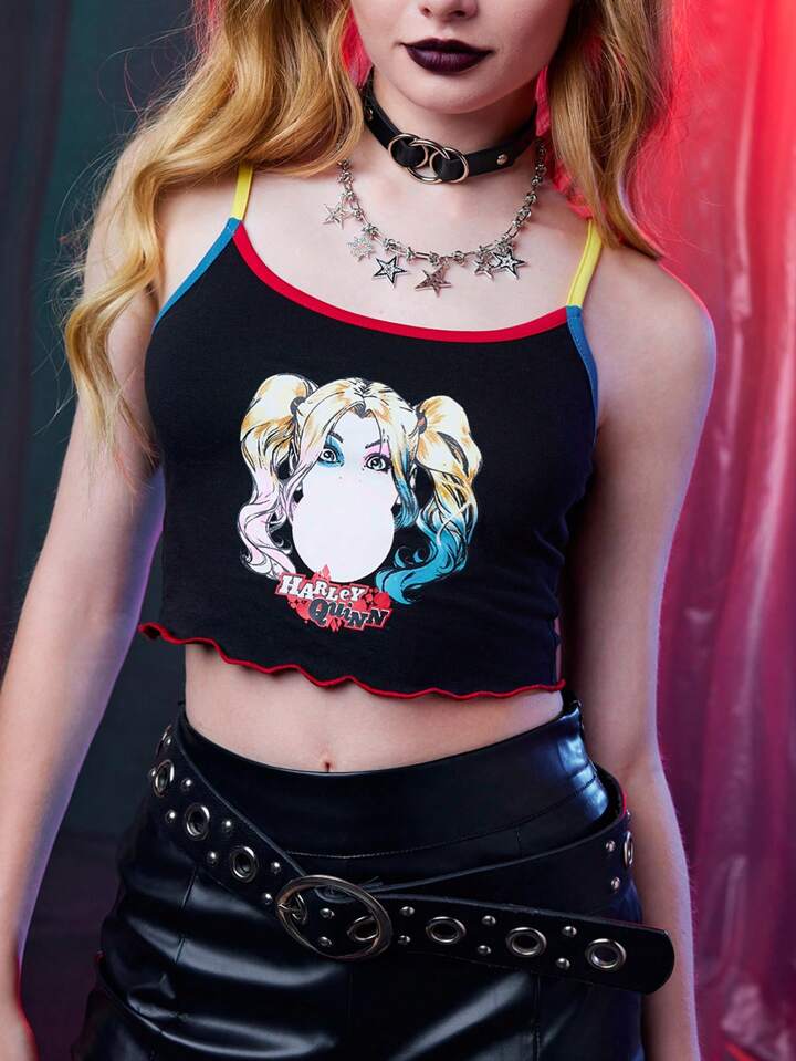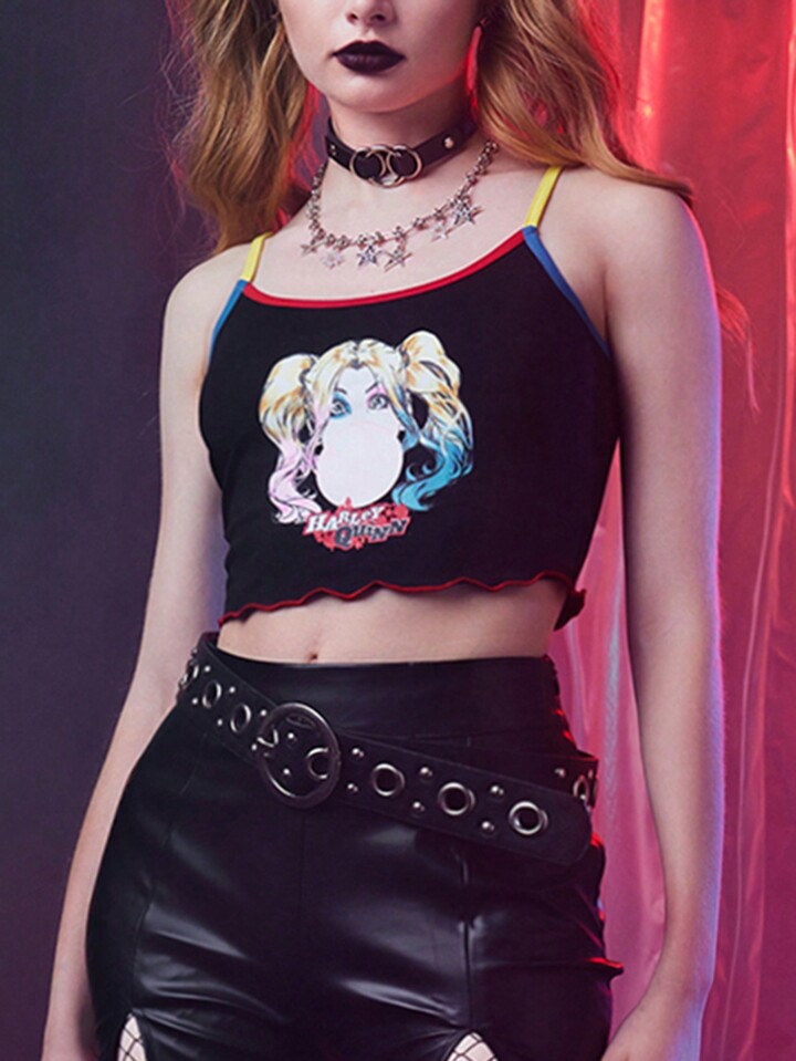 Harley Quinn | ROMWE Top À Fines Brides Figure À Liseré Contrastant