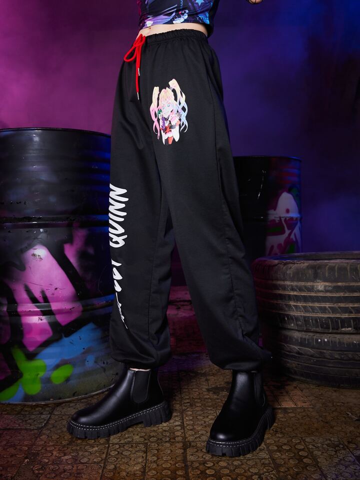 Harley Quinn | ROMWE Pantalon de survêtement à motif lettre et figure à cordon