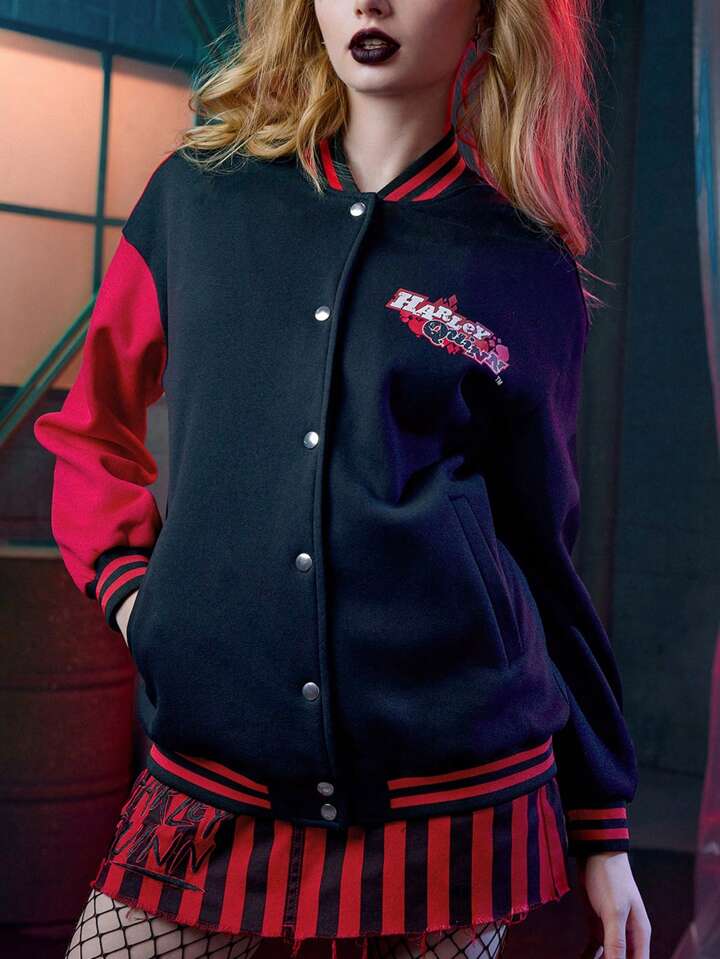 Harley Quinn | ROMWE Veste Universitaire À Lettres À Blocs De Couleurs Épaule tombante