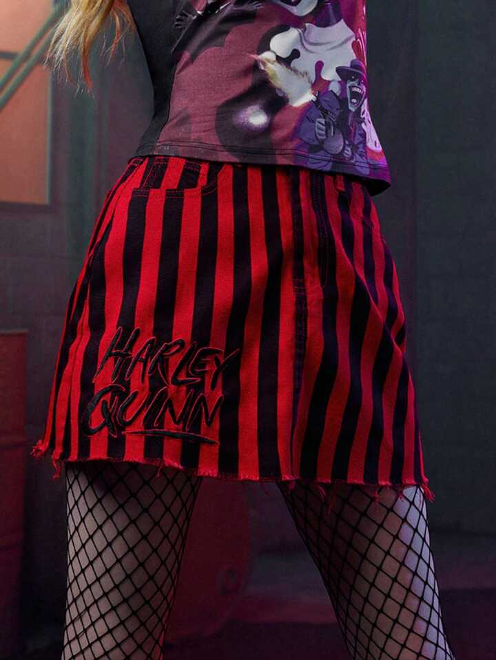 Harley Quinn | ROMWE Jupe En Jean À Rayures À Lettres