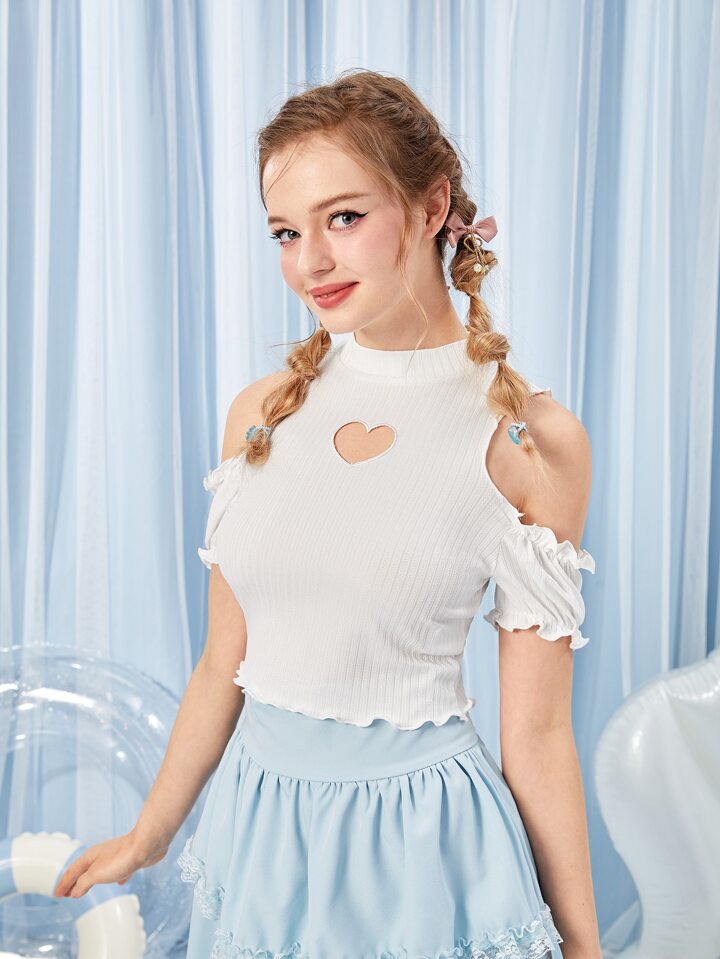 T-shirt découpé cœur à épaules dénudées à ourlet ondulé