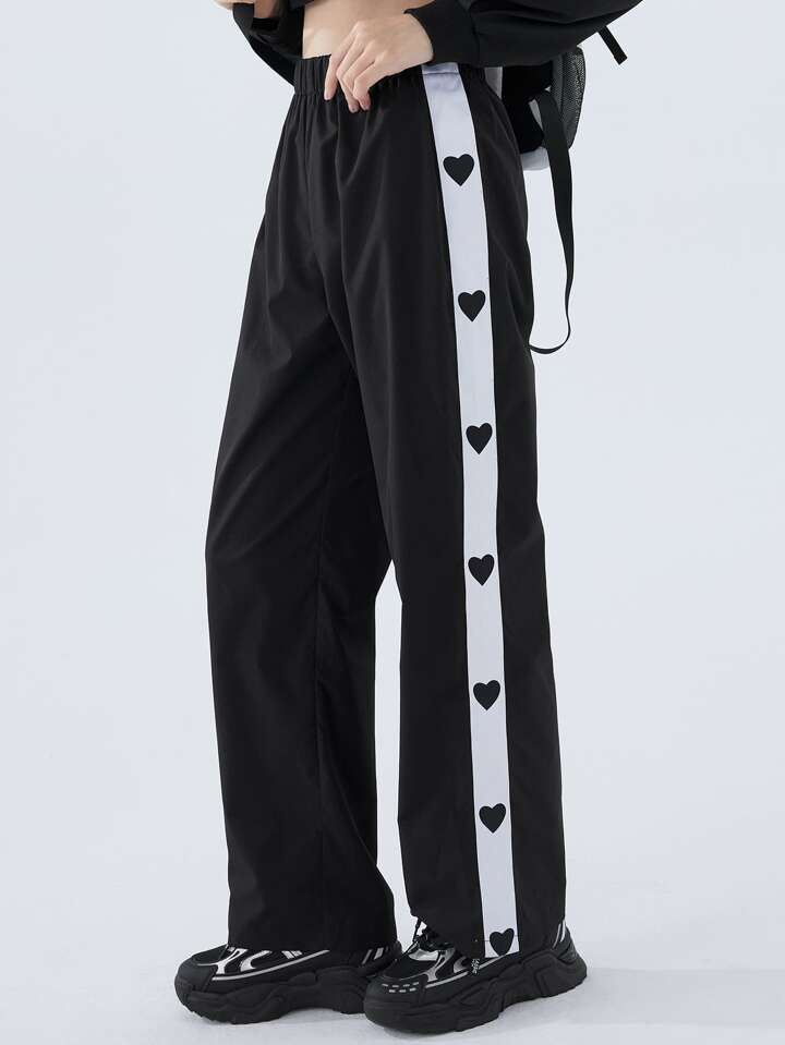 Pantalon de jogging pour femmes avec imprimé cœur et coutures latérales contrastées, vêtements de rentrée scolaire pour l'automne