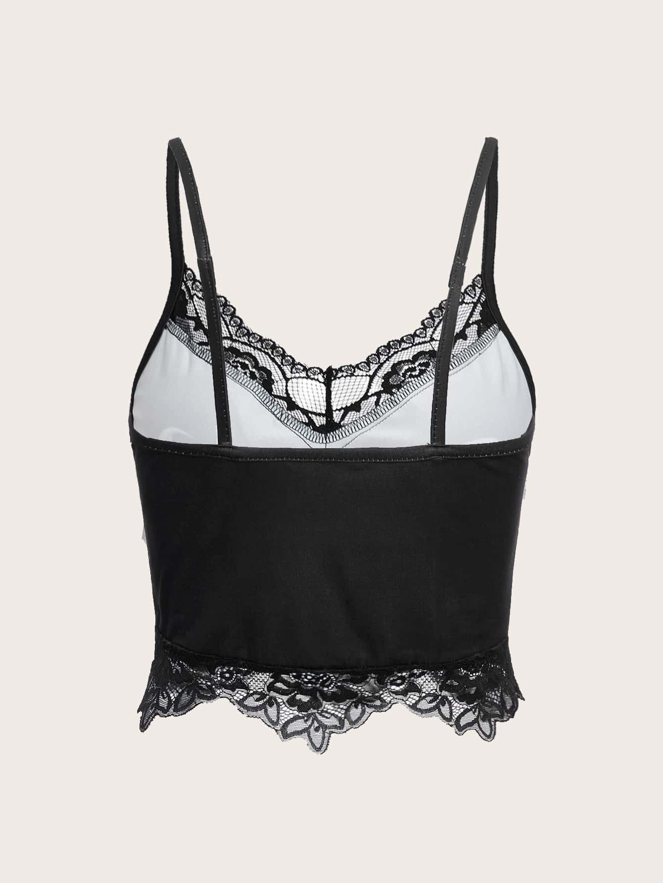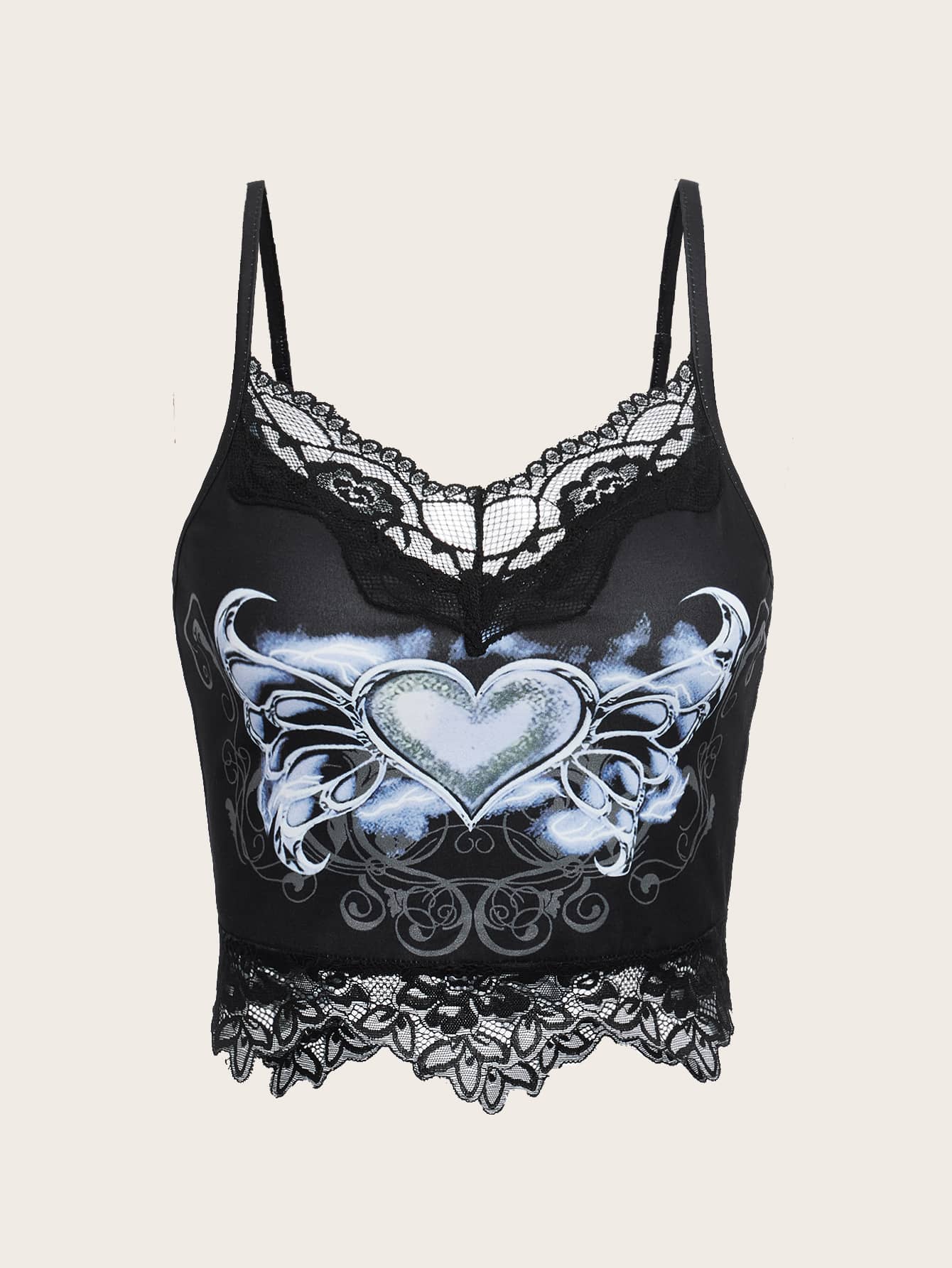 Top à fines brides à imprimé cœur ourlet en dentelle
